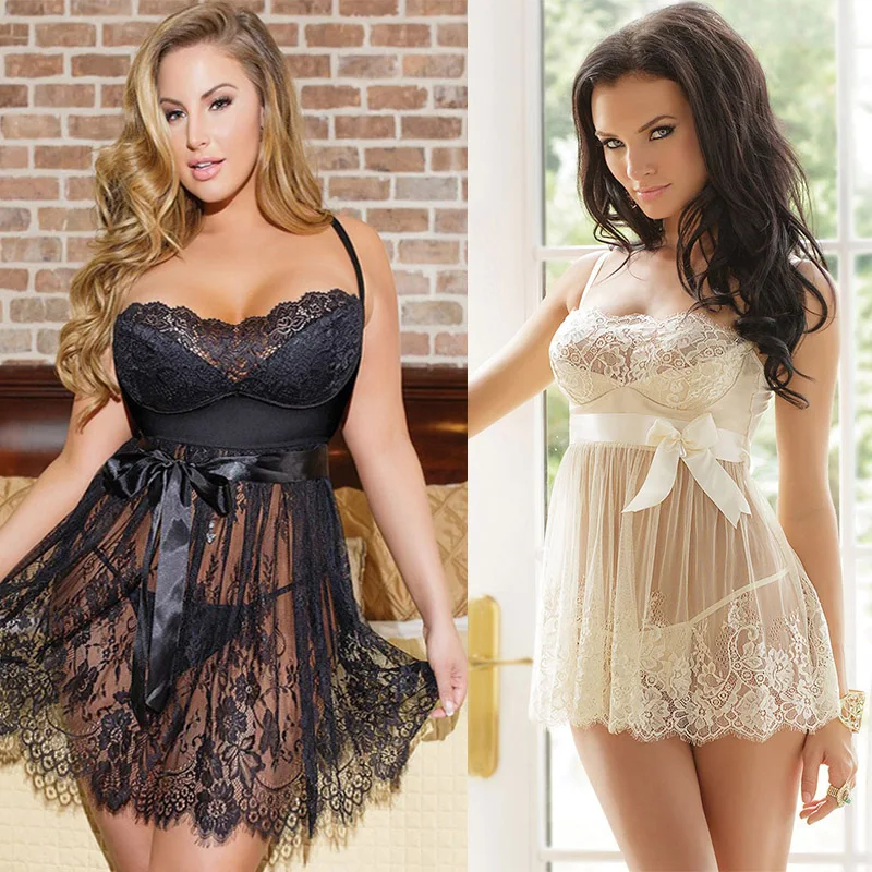 Кружевная ночная рубашка 5XL, женское Прозрачное нижнее белье, пика...