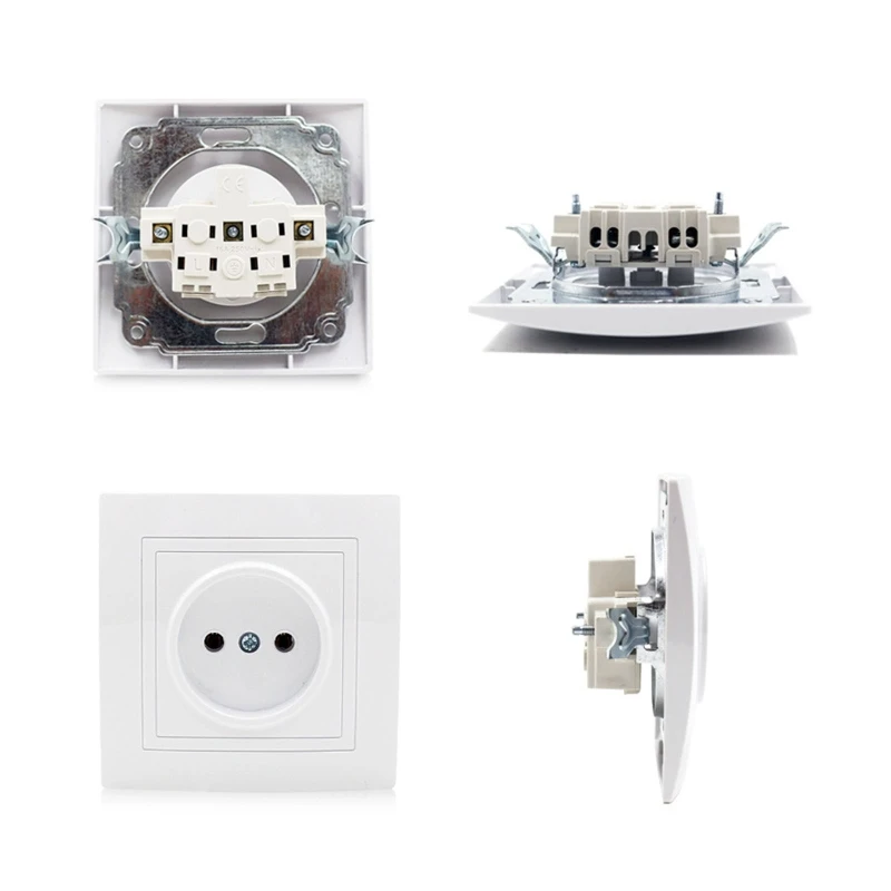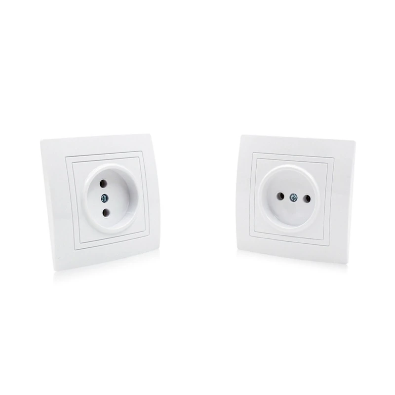 Европейская 2-контактная розетка с круглым отверстием, настенная белая панельная розетка, встраиваемая с одной розеткой, устойчивая к темперам 3,22x3,22 дюйма