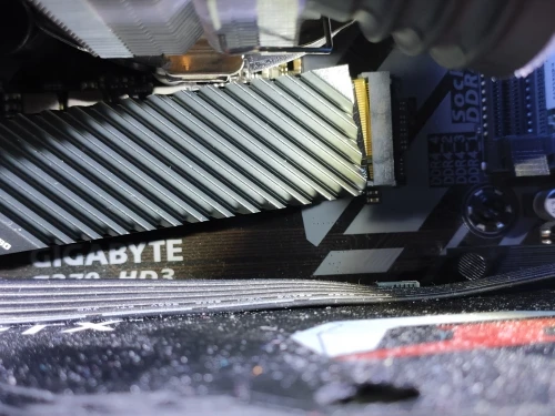 2. Теплоотвод из алюминия с встроенной теплопроводящей силиконовой прокладкой, которая быстро проводит тепло и позволяет избежать перегрева и замедления работы SSD.