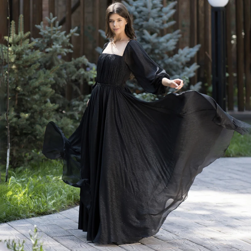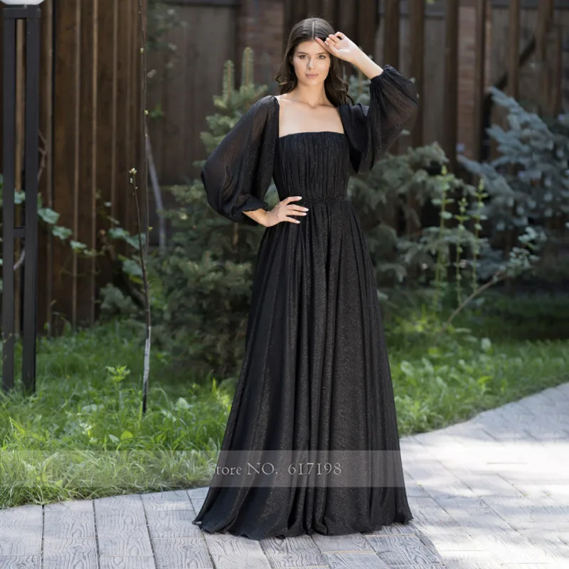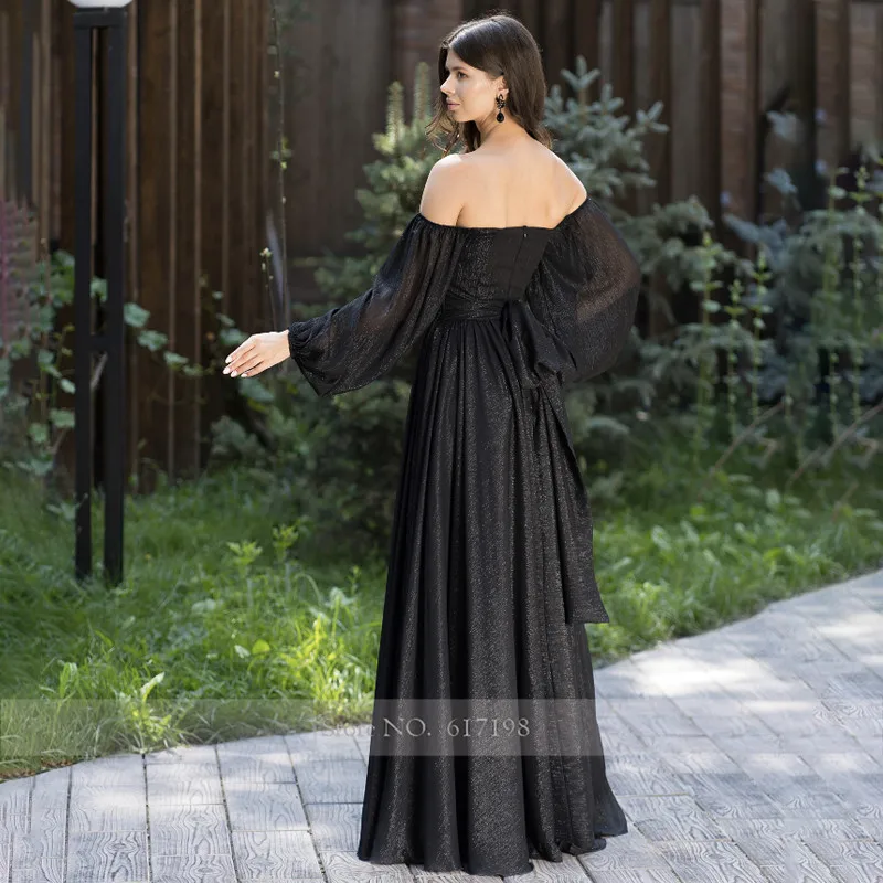 Женское вечернее платье без бретелек, черное ТРАПЕЦИЕВИДНОЕ ПЛАТЬЕ на молнии с длинными рукавами-фонариками, блестящее Тюлевое платье для выпускного вечера, новое поступление
