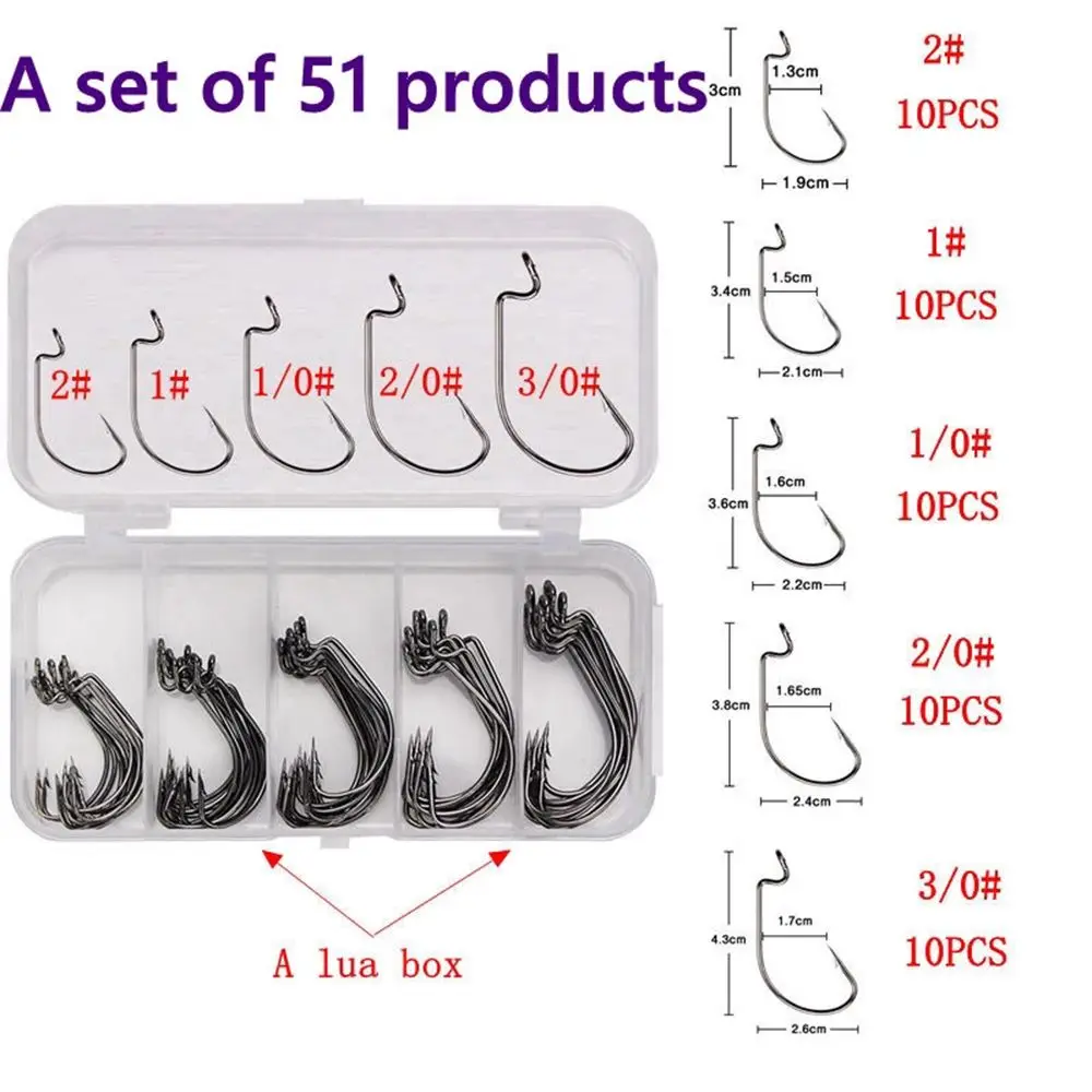 Набор рыболовных крючков для мягкой приманки, червя, 50 шт.