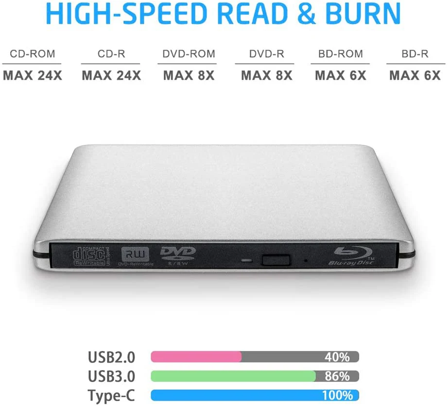 Ультратонкий Внешний Оптический привод 4K Blu-Ray горелка usb DVD плееры 3D Blu-Ray устройство для чтения CDDVD