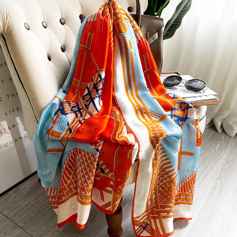2022 женский шелковый шарф, роскошный дизайн, Женская пляжная шаль с принтом, шарфы, модный платок, Женский хиджаб
