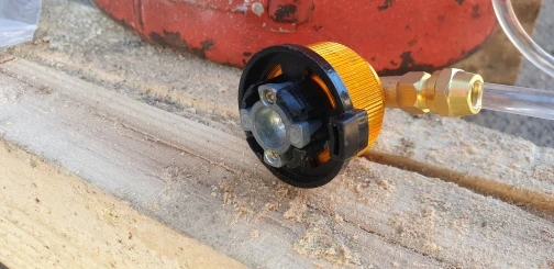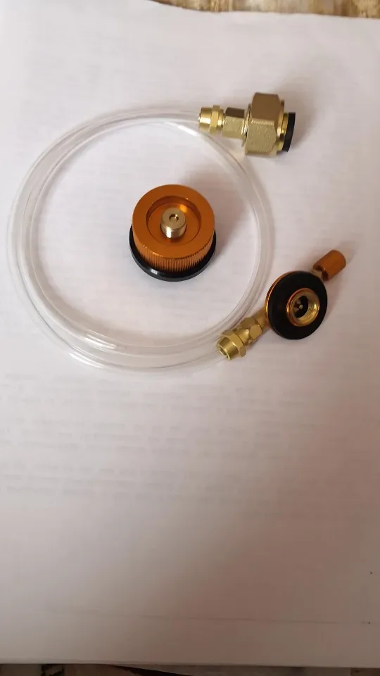 приспособа ваще огонь, можно заправить балончик газом на изи, только не трясите его когда заправляется, а то меньше войдет! ещё чтобы долить до уровня придётся охладить балрнчики в морозилке, штукенция просто бомба ,шланг прозрачный не лопается от давление и смысла в армированном нет,в этом хоть видно что из балона идёт, а газ то какого лютого качества, поджигается сразу, с таким переходником и балончики с краской можно заправлять, предварительно залив краску со шприца через верхний клапан балона,надавив на него шприцом с краской)))