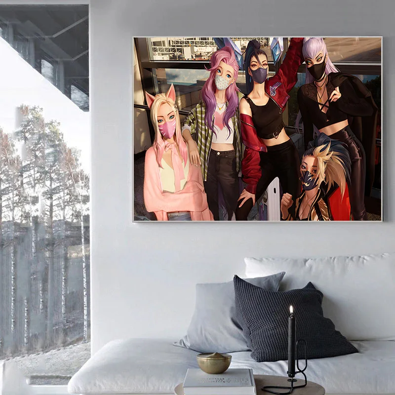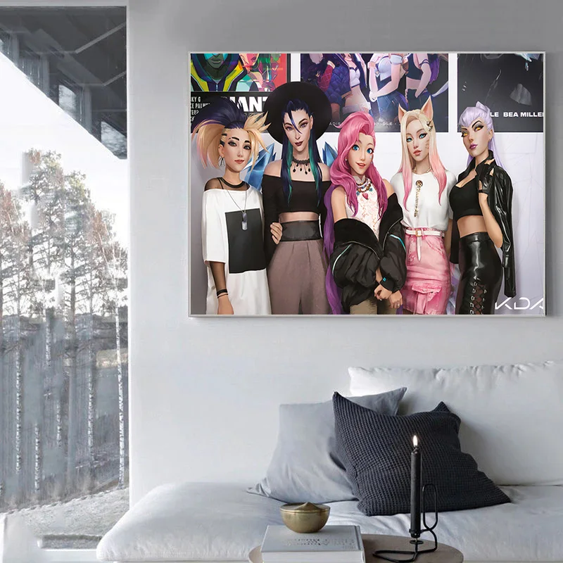Плакат из Лиги Легенд KDA, трафаретные плакаты и печать на стене, украшение, кавайное украшение для комнаты, холст