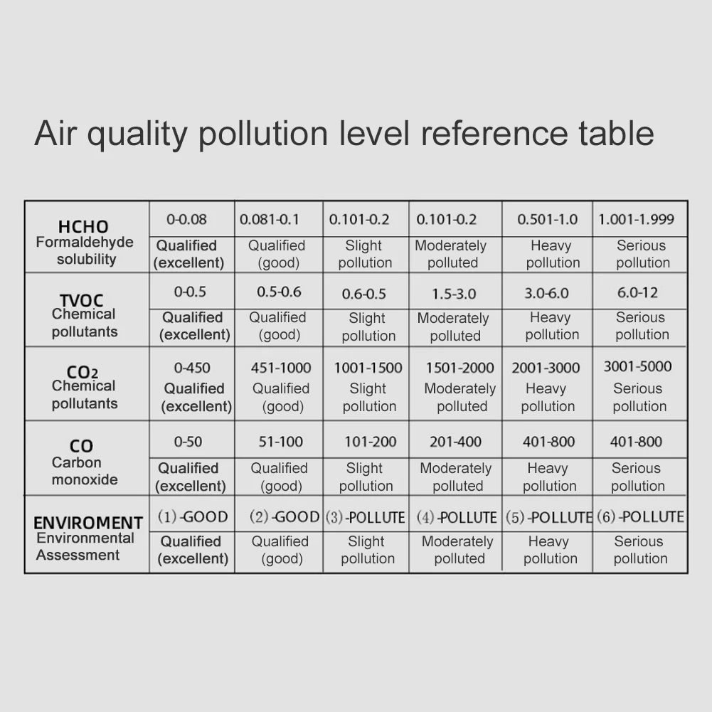 Монитор качества воздуха 5 в 1, светодиодный дисплей, CO CO2 HCHO TVOC AQI, детектор качества воздуха, анализатор газа