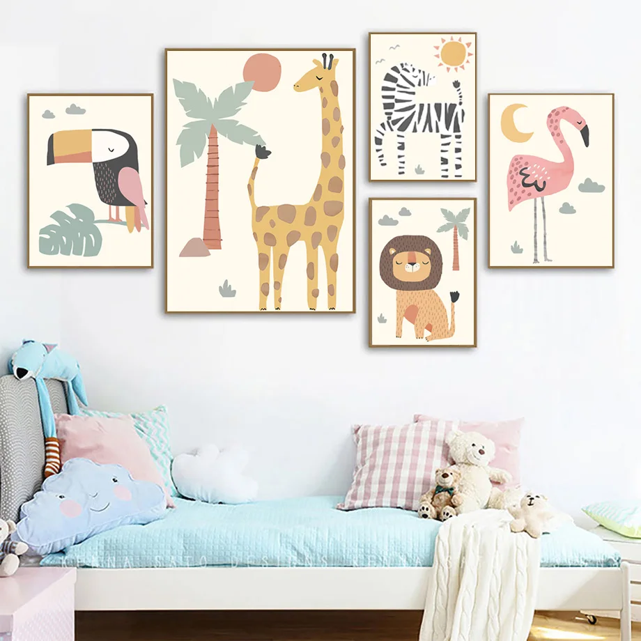 Мультфильм Сафари скандинавский постер слон жираф лев Фламинго Крокс Леопард настенная живопись на холсте настенные картины декор для детской комнаты