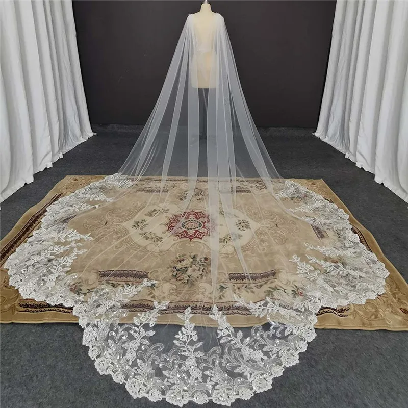 Длинные Кружевные Свадебные вуали 3 м длинная белая цвета слоновой ...