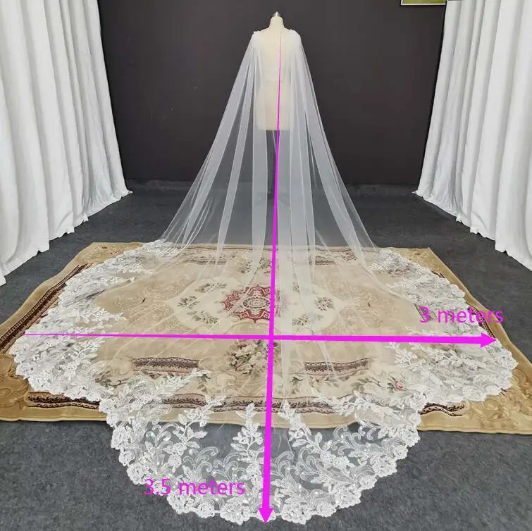 Реальные фотографии, длинная кружевная Свадебная накидка, 3,5 м, Св...