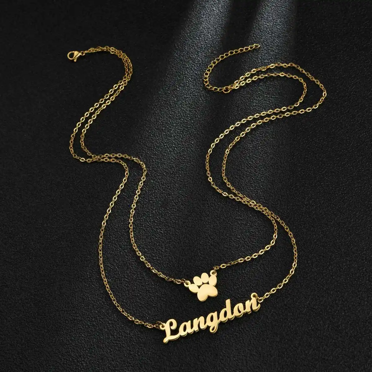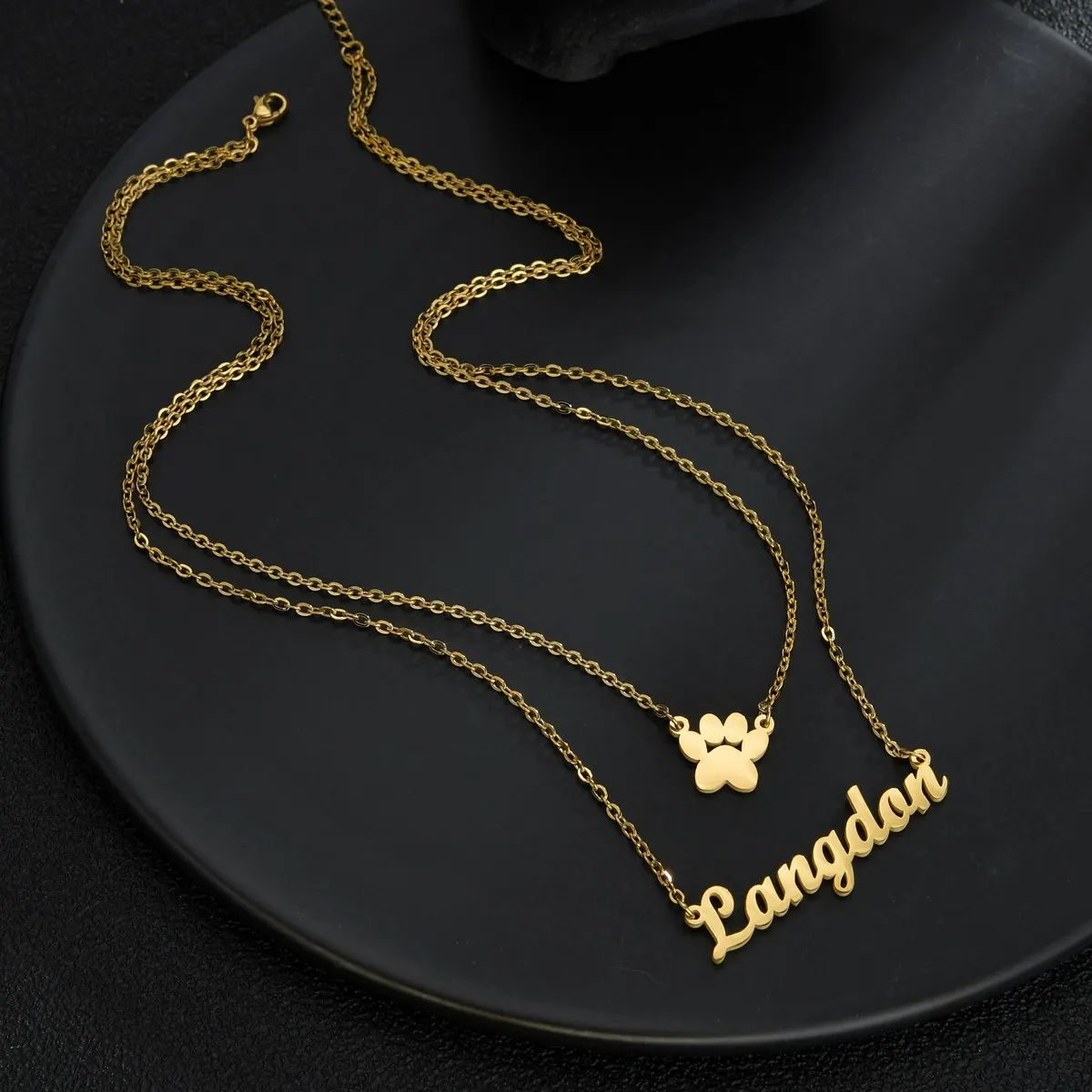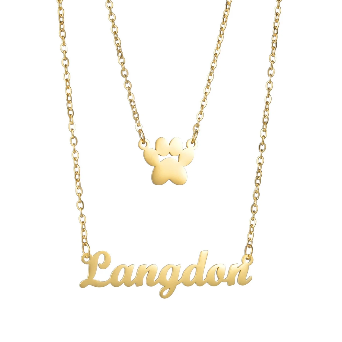 Название:Atoztide Индивидуальные Имя ожерелья Письмо двухслойные «Медвежья Лапа» колье из нержавеющей стали Персонализированные Золотой кулон, украшения для женщин, подарок