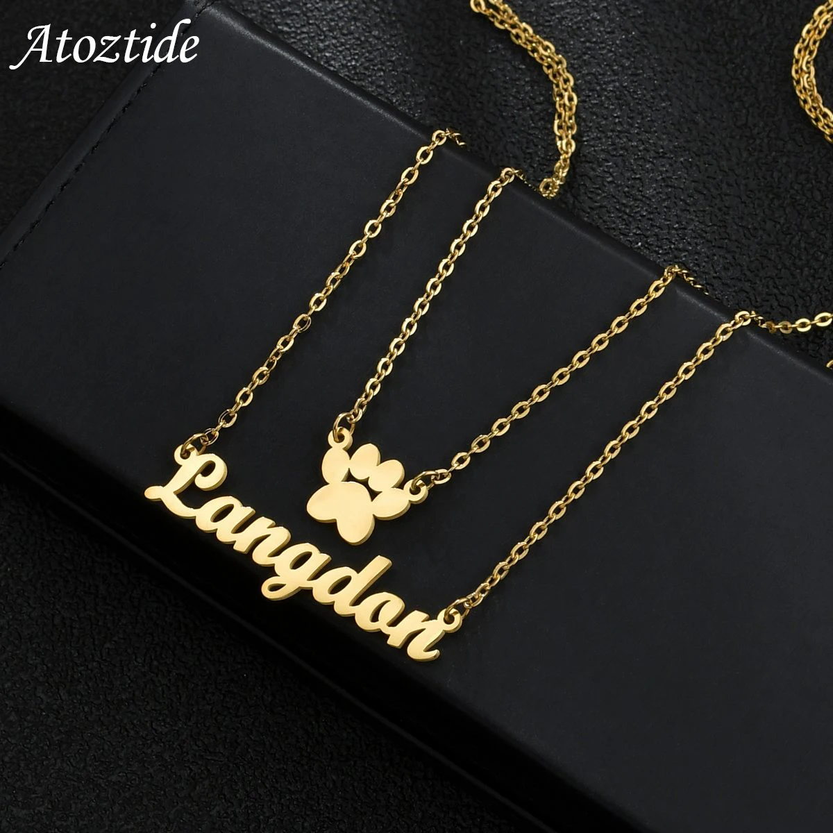 Ожерелья Atoztide с именем на заказ, двухслойный чокер в виде медвежьей лапы с надписью, из нержавеющей стали, товар в подарок для женщин