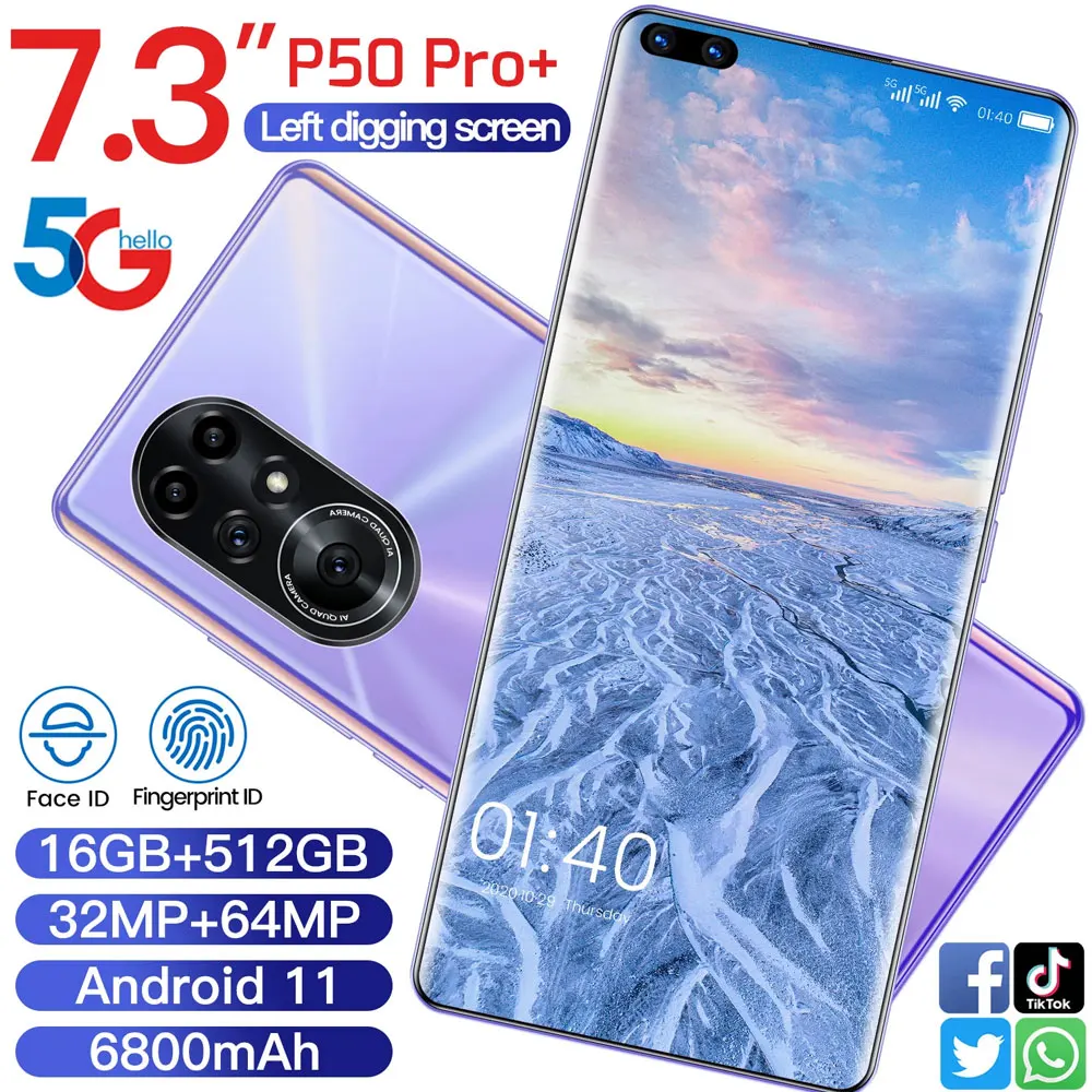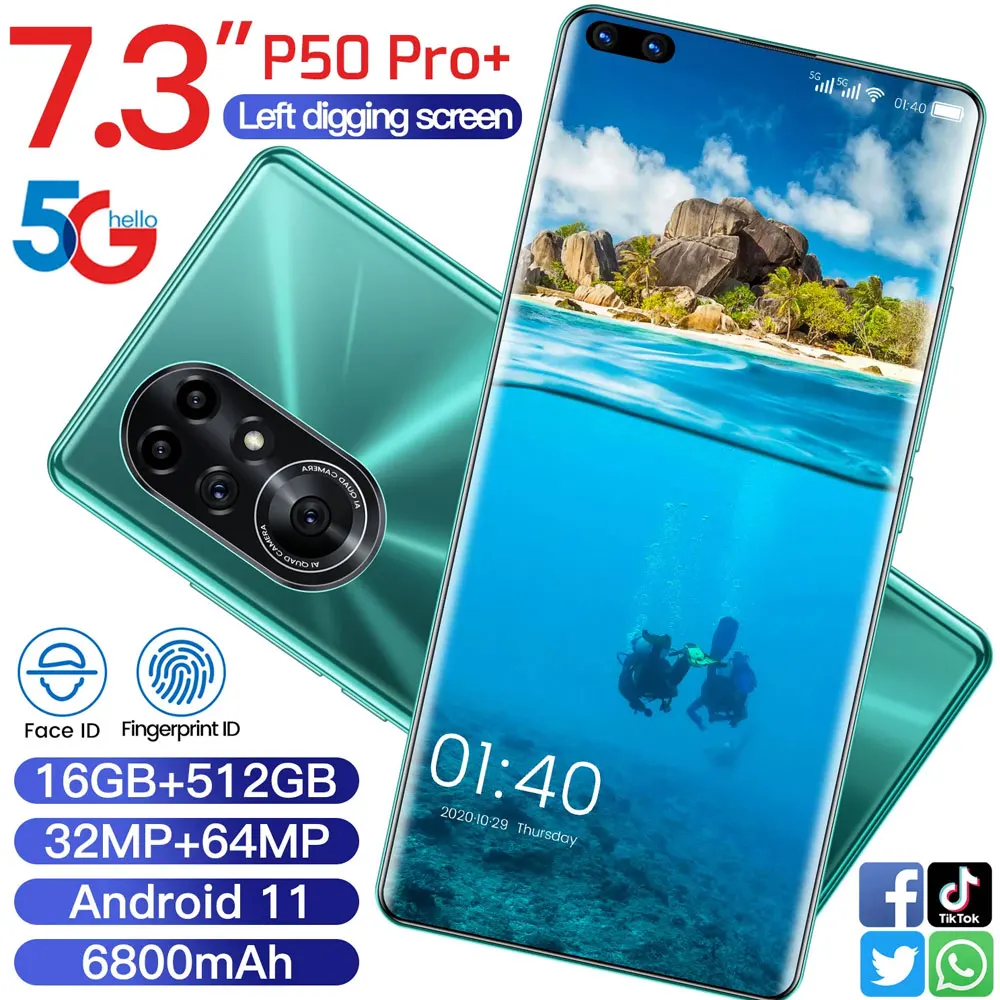 Смартфон P50 Pro +, 16 + 512 ГБ, 6800 мАч, Android 10,0, 7,3 дюйма, 32 + 64 Мп, HD, 4G, сеть, 2021
