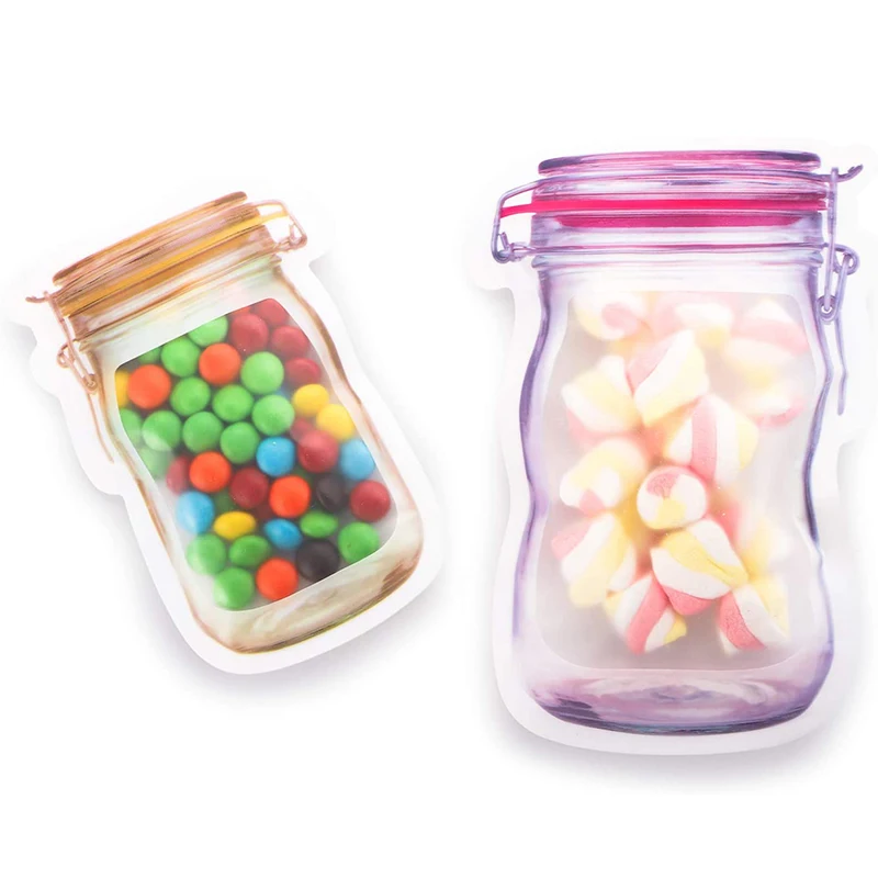 20 шт многоразовые бутылки для Мейсона, мешки, гайки, Герметичная сумка для хранения еды, конфетное печенье, закуски, на молнии, герметичные сумки, органайзер для кухни