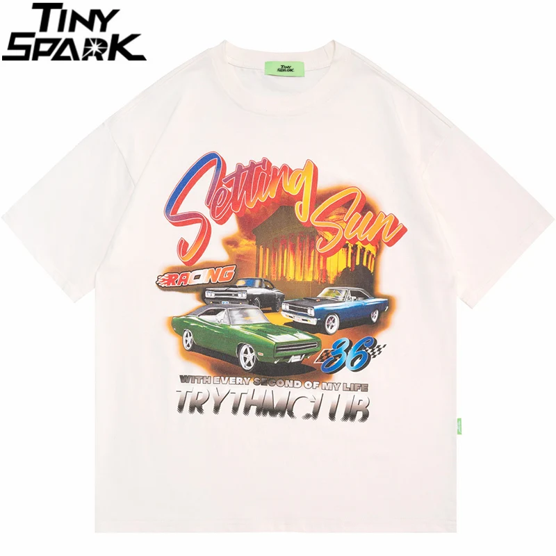 Уличная футболка в стиле хип-хоп Harajuku, футболка с буквенным принтом гоночного автомобиля 2022, мужская хлопковая Повседневная летняя футболка с коротким рукавом, топы