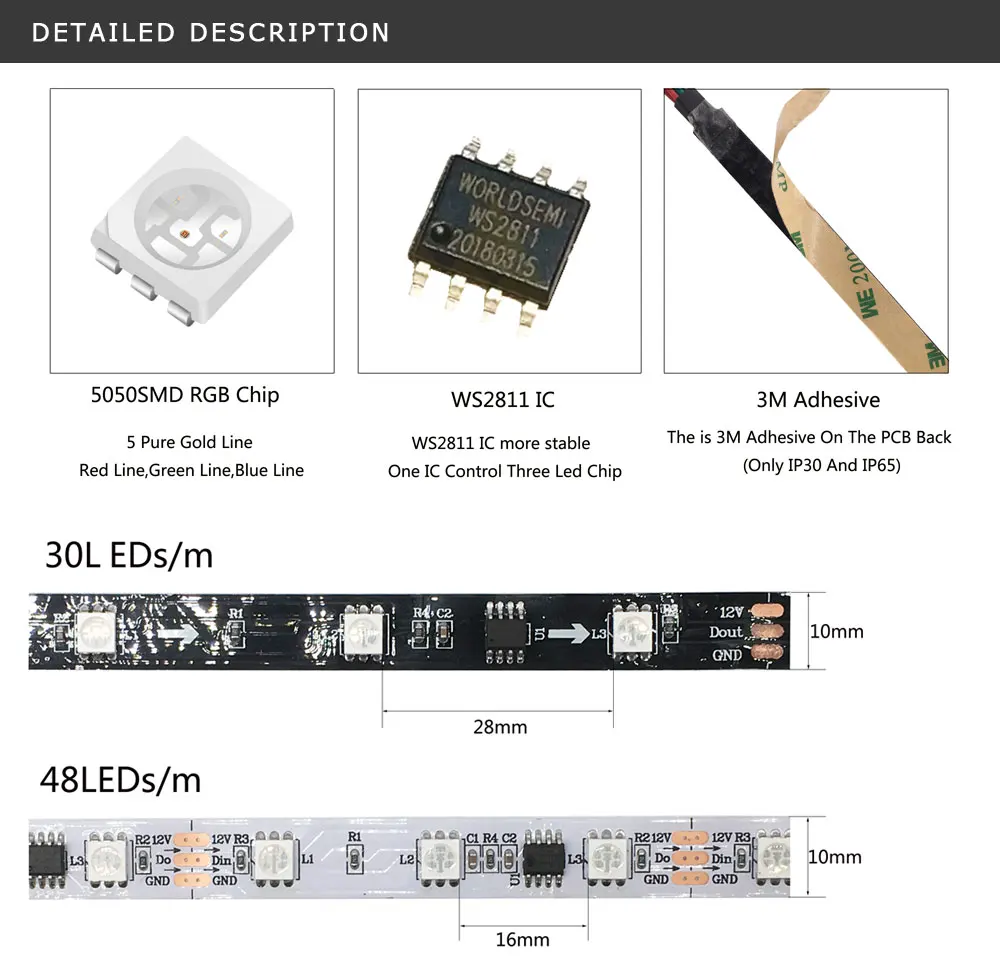 Пиксельная светодиодная ленсветильник WS2811 5050SMD DC 12 В постоянного тока, Адресуемая Светодиодная лента 3060 светодиодов sm, внешняя 1 ИС-управление, 3 светодиосветодиодный s