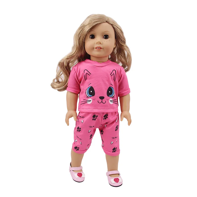 С рисунком кота; Одежда для сна детская одежда Fit 18 дюймов с капю...
