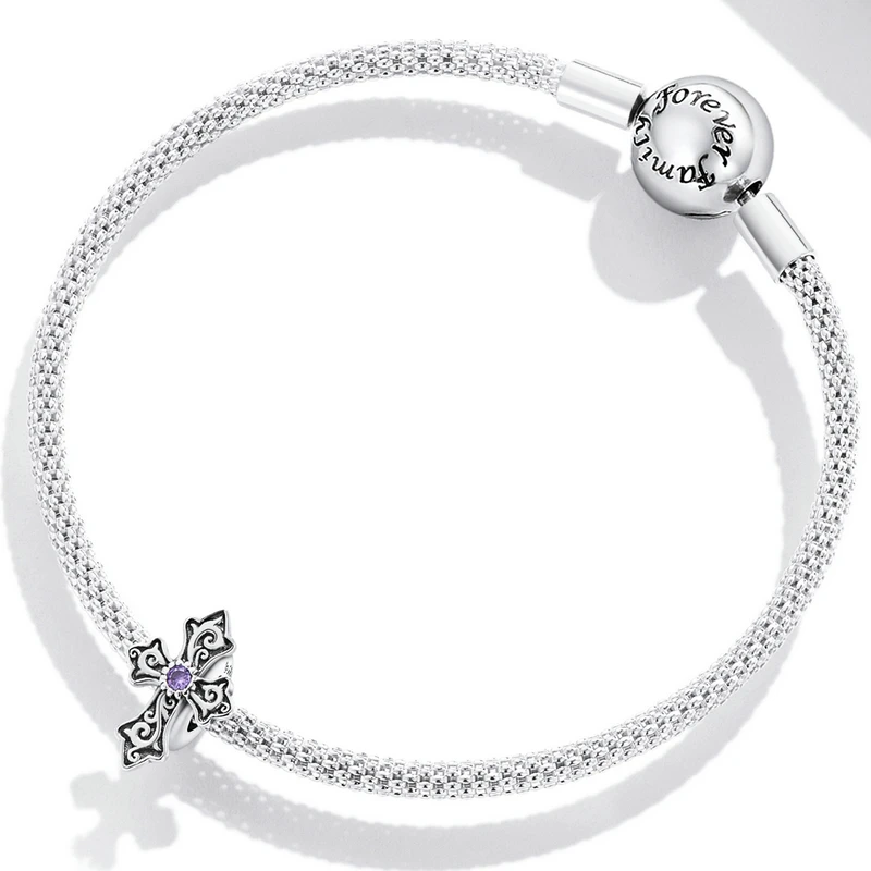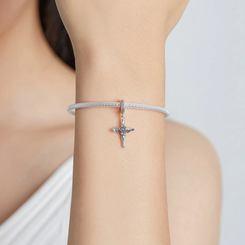 Bamoer, серебро 925 пробы, винтажный узор, Очаровательные бусы, серебряный крест, подвеска, Женский оригинальный DIY браслет, ожерелье, ювелирные изделия, подарки