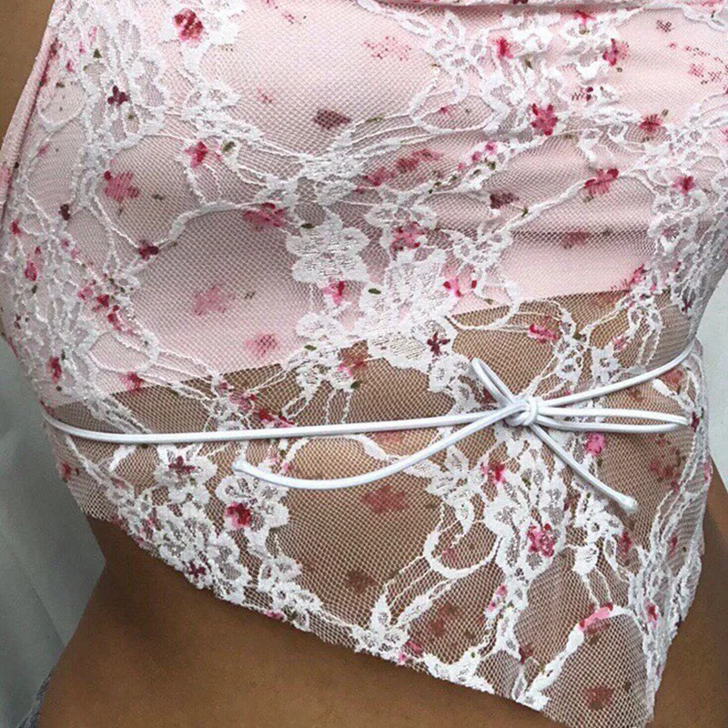Y2k эстетичный цветочный Кружевной укороченный топ, женский сексуал...
