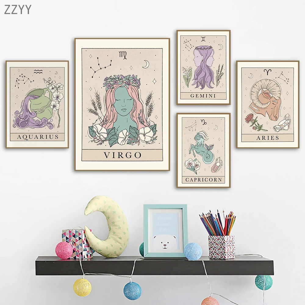 Печать на холсте, богемная стена со знаками Зодиака, Художественная...