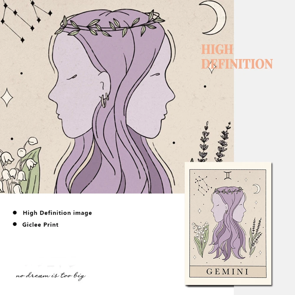 Богемный Знак зодиака Художественная печать холст карты Таро вдохно...