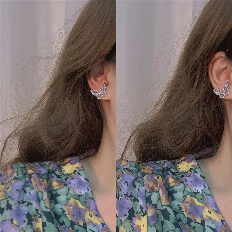 Корейские модные серьги-бабочки для женщин в стиле Панк Стразы милые серьги-гвоздики с цирконом в стиле K-POP ювелирные изделия подарок на день Святого Валентина