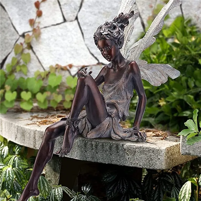 Статуя из смолы, сидящая фея, садовый орнамент, скульптура для крыл...