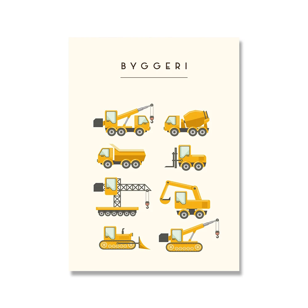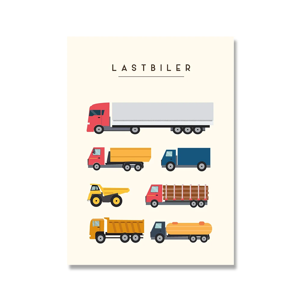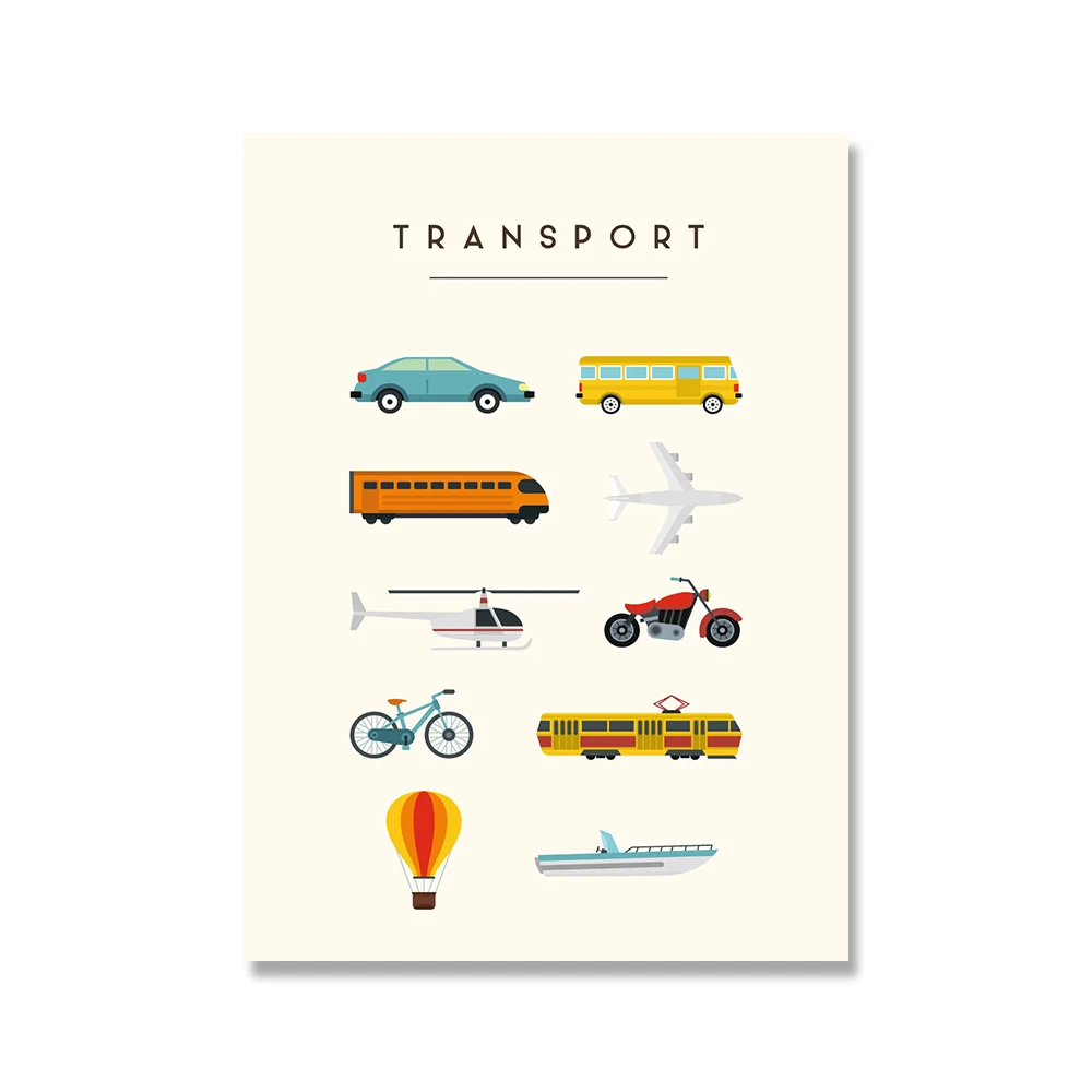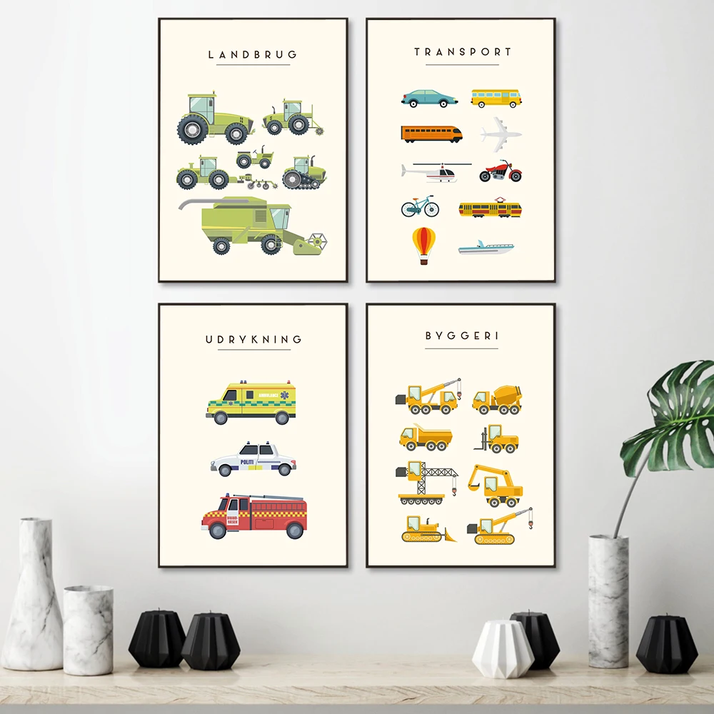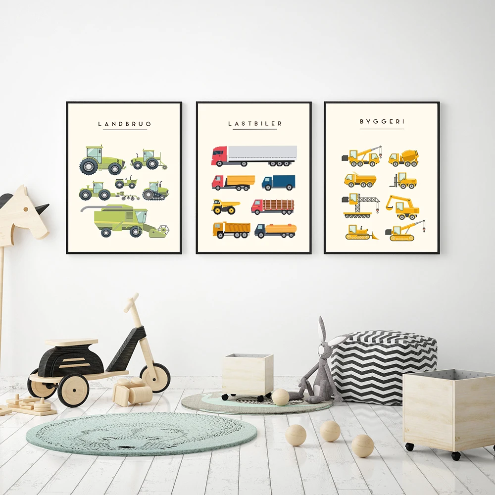 Мультяшные постеры для игрушечного транспорта, постеры с принтом дл...