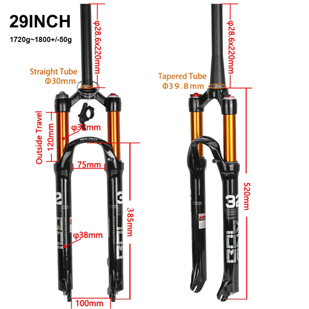 Велосипедная вилка Bolany, Велосипедная вилка с воздушным креплением, 29 дюймов, для горного велосипеда, 32 RL100mm 2627.5 ", вилка из магниевого сплава для горного велосипеда, детали для велоспорта