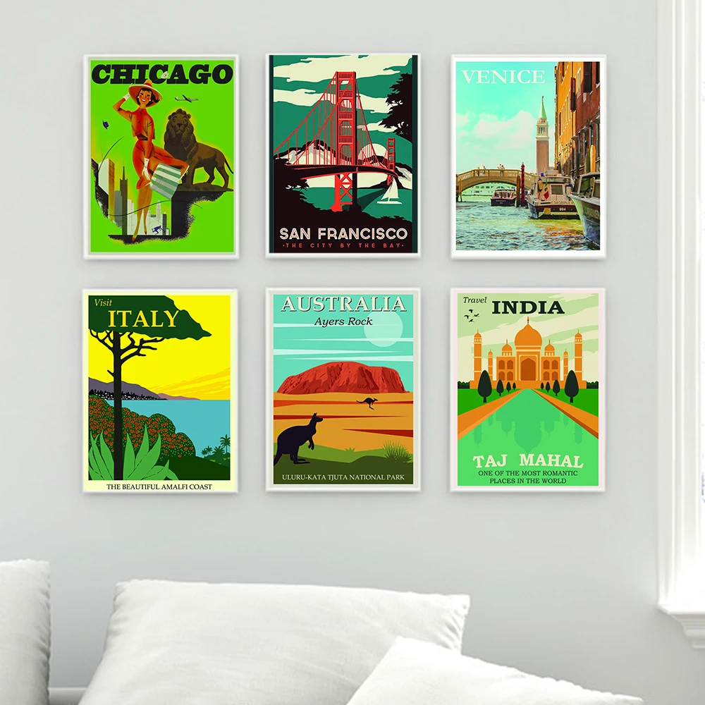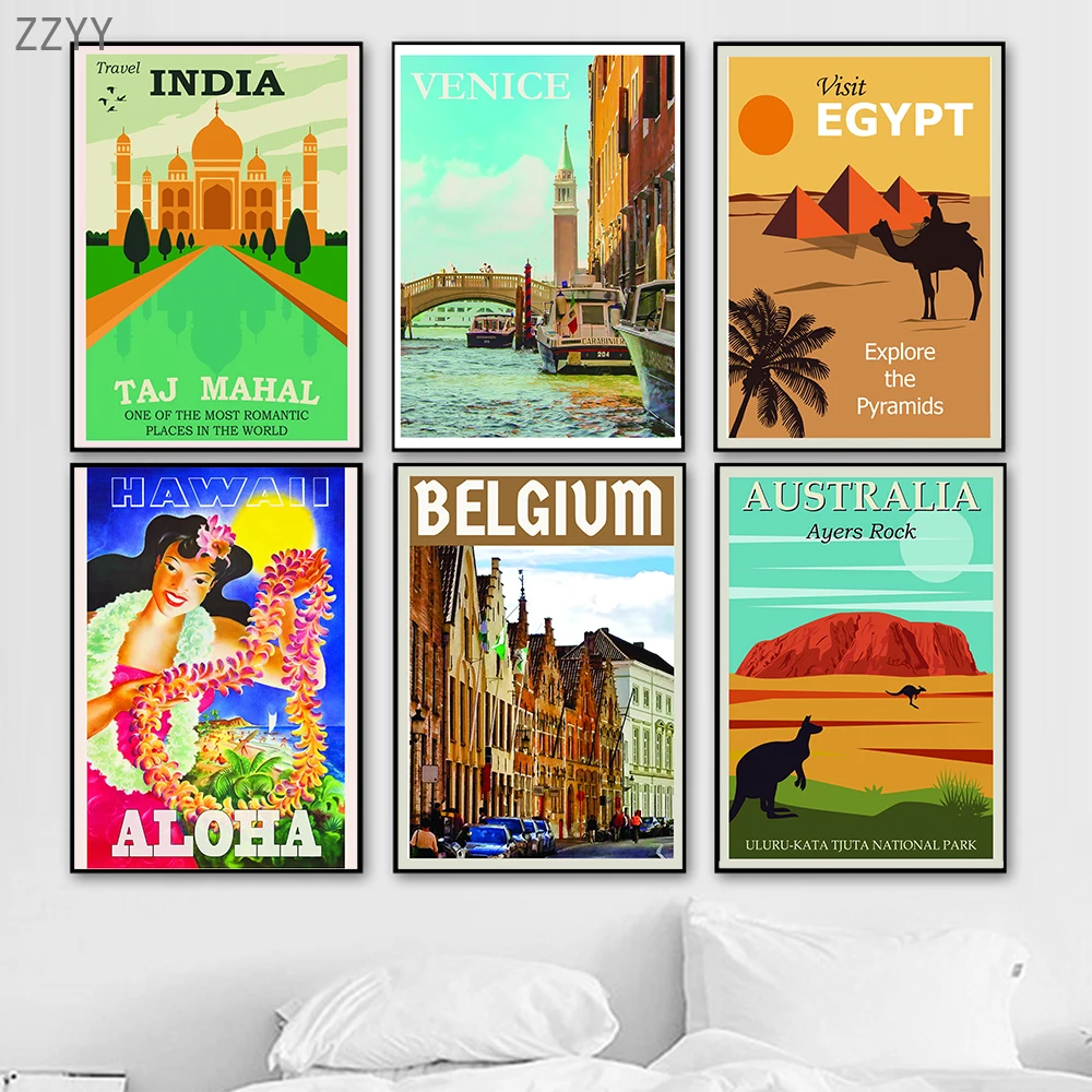 Веселые Мультяшные постеры для путешествий, принты Canda, Испания, ...