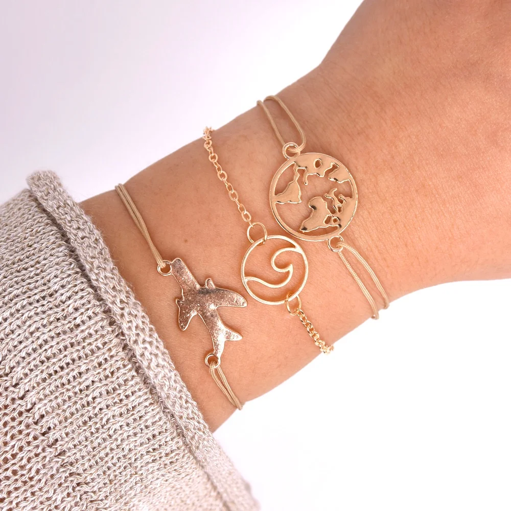3 шт.компл. браслет с картой мира, креативный женский браслет, ювелирные изделия, подарок