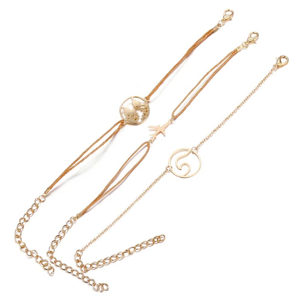 Комплект из 3 предметов для женщин и девушек, милые богемные брасле...