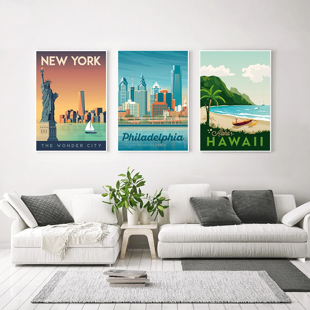Нью-Йорк, Рим, Майами, Мадрид, город, путешествия, Настенная картин...