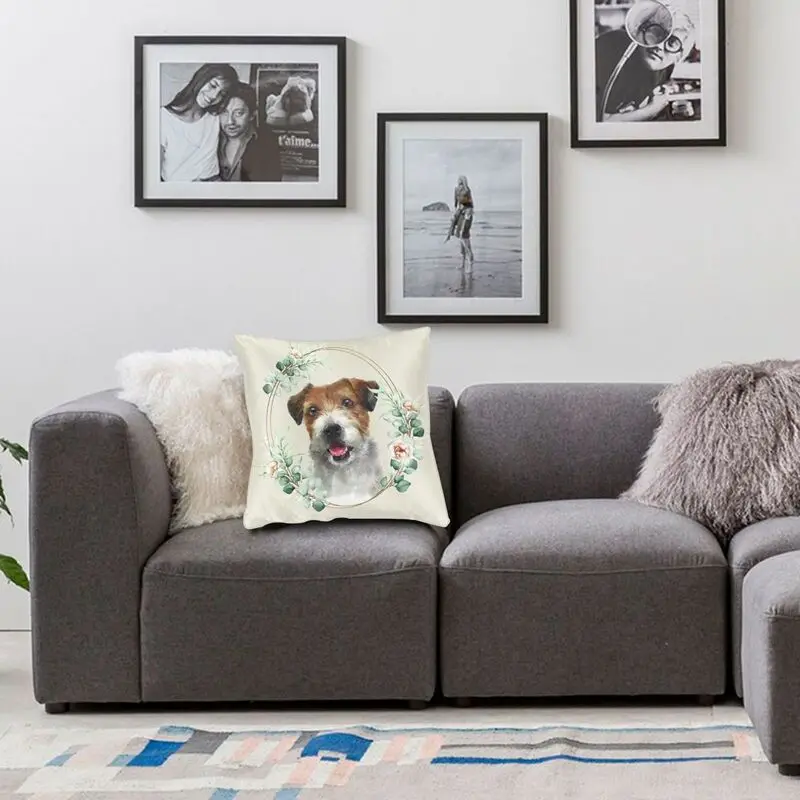 Чехол для подушки с изображением собаки Джека Расселла терьера в цветочек золотого цвета