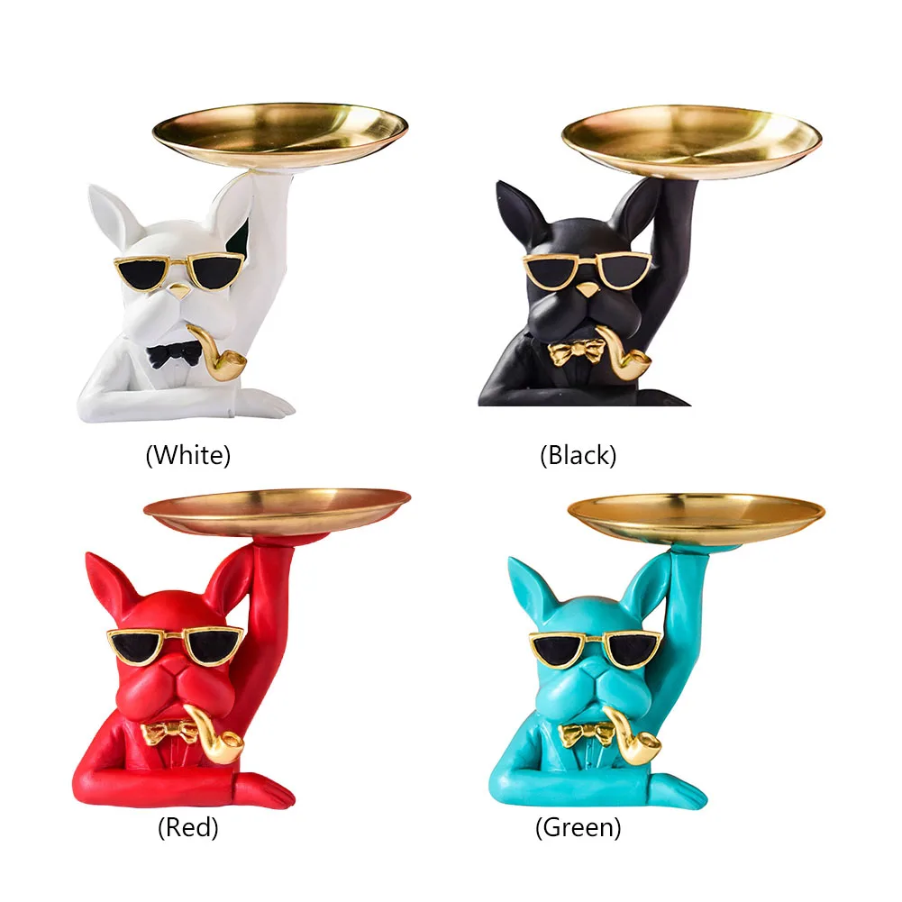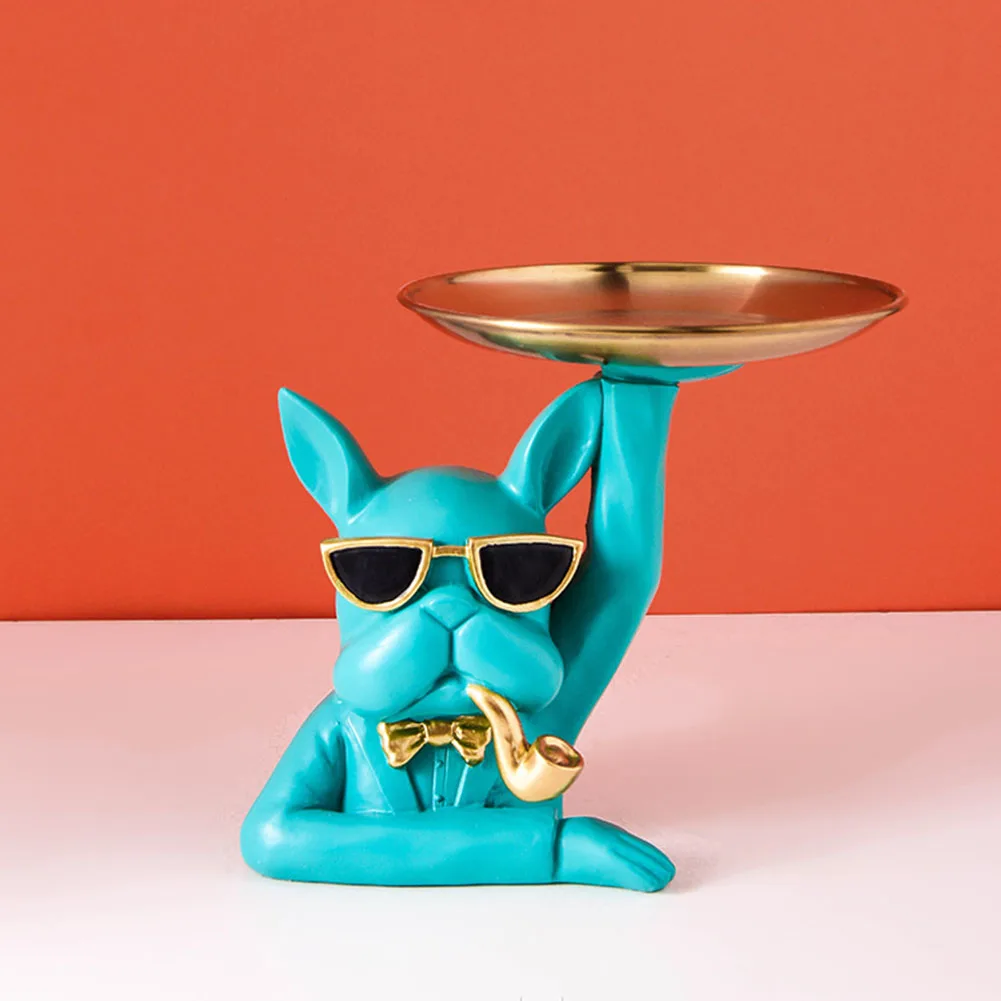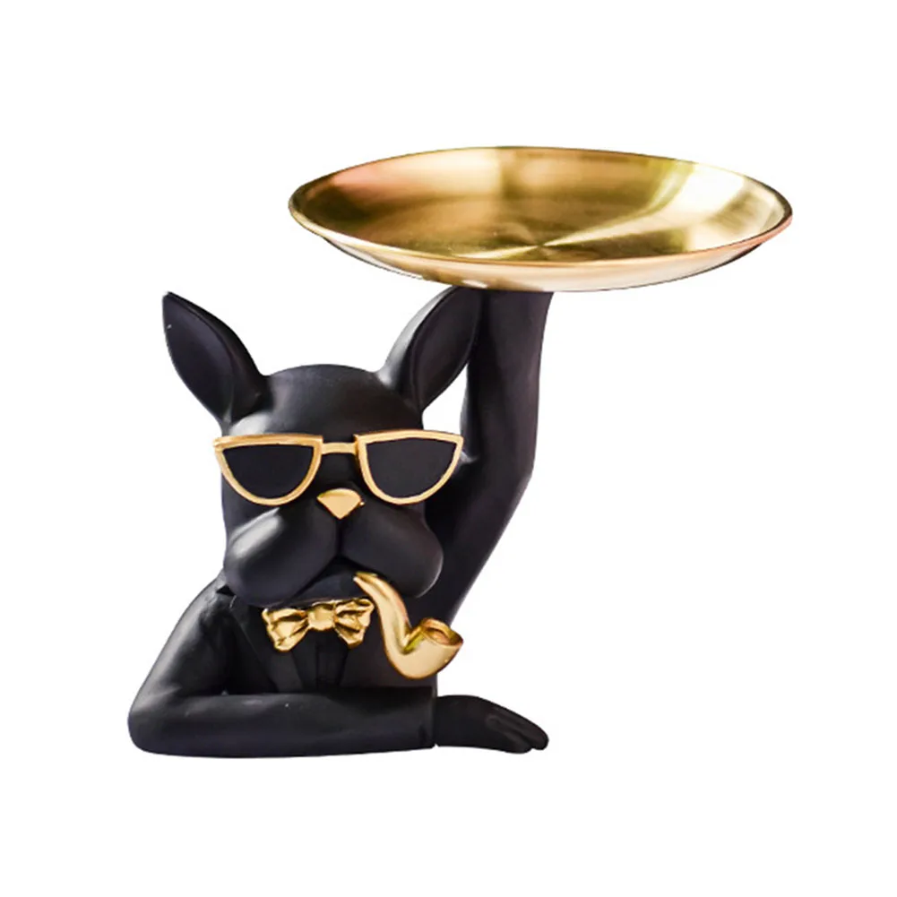 Скульптура скандинавского французского бульдога статуя Современная Статуэтка для собаки из смолы держатель для хранения ключей стеклянная тарелка для закусок конфетный лоток Настольный органайзер украшение для дома Художественный подарок
