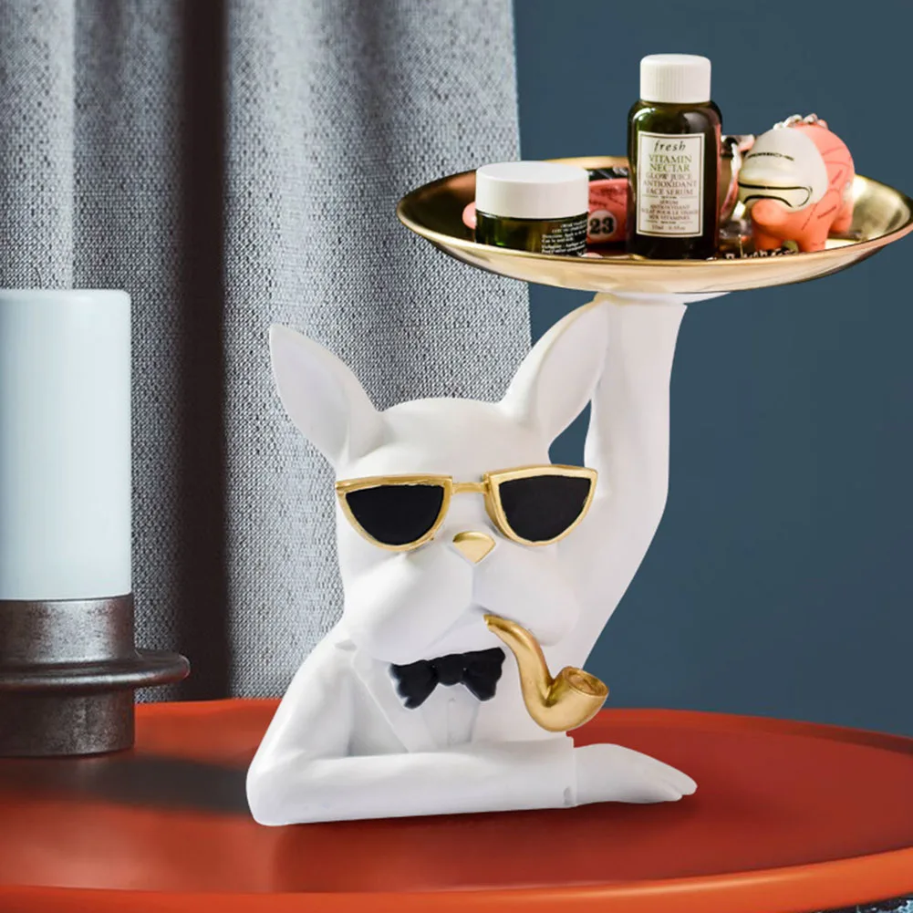 Скандинавская скульптура французского бульдога, статуя собаки, украшение стола для хранения ювелирных изделий, Подарочная тарелка с ремнем, поднос для очков, статуя для домашнего искусства