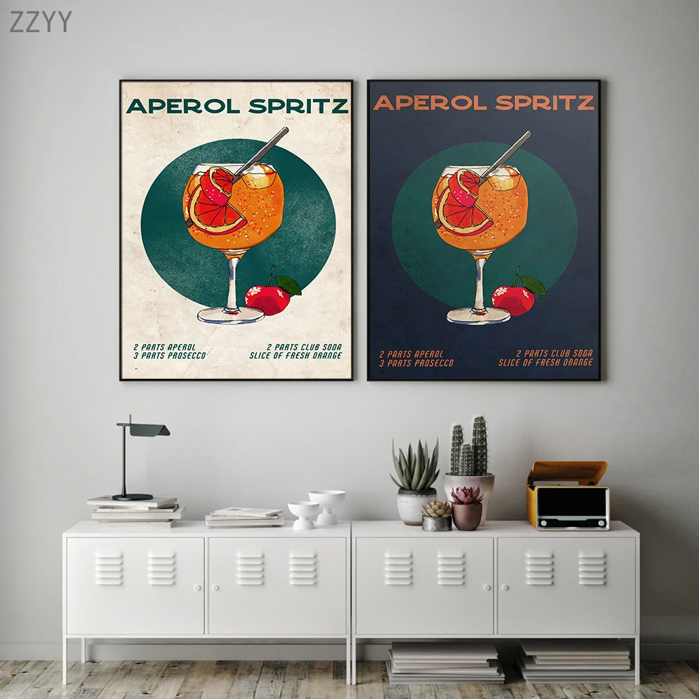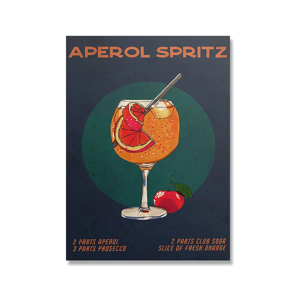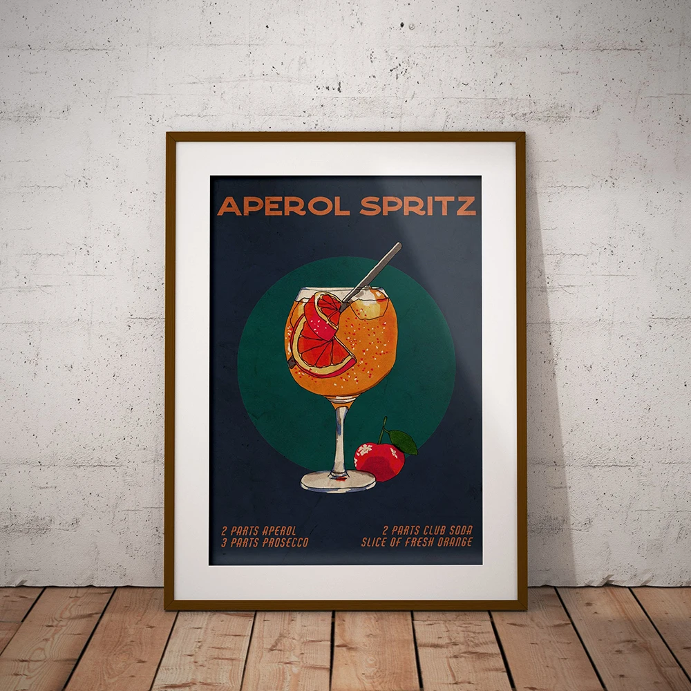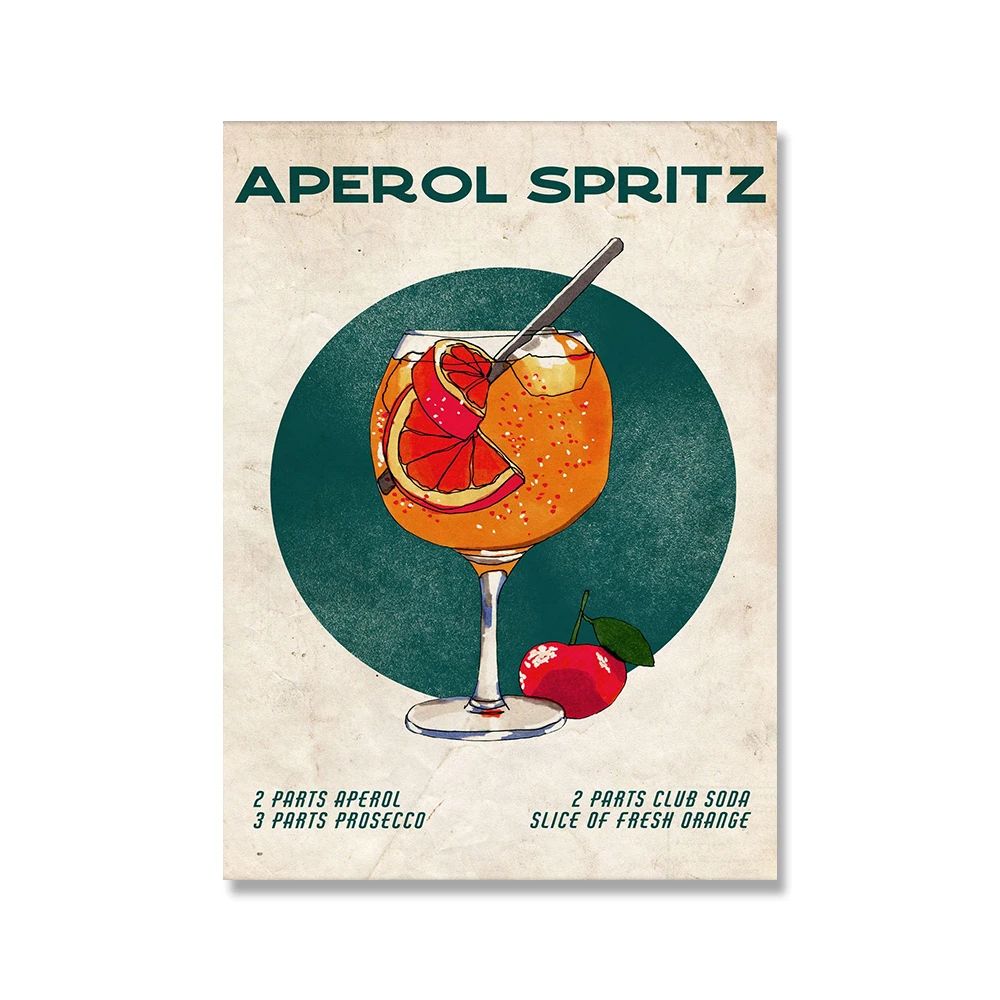Винтажный стильный аперол Spritz печать постер коктейль рецепт Карт...