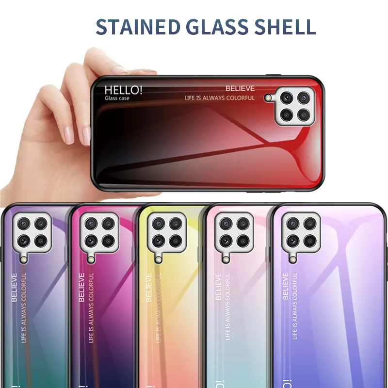 Чехол из закаленного стекла для Samsung Galaxy A22 A52 A32 A12 A42 5G A41 A51 A71 A40 A50 4G, модный тонкий чехол для телефона с градиентом