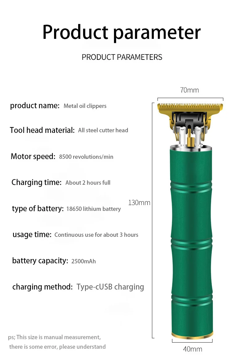 Машинка для стрижки волос KUNLS электрическая, профессиональная машинка для стрижки волос для мужчин, в форме бамбука, триммер для бороды, металлический корпус