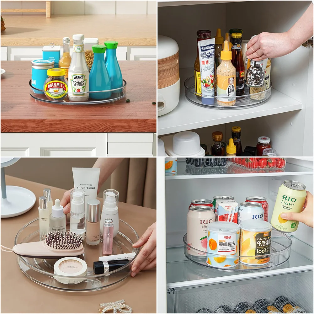 Вращающийся на 360 градусов Органайзер для шкафа, пластиковая круглая стойка для хранения, стойка для специй, поворотный стол для косметики, аксессуары для ванной и кухни