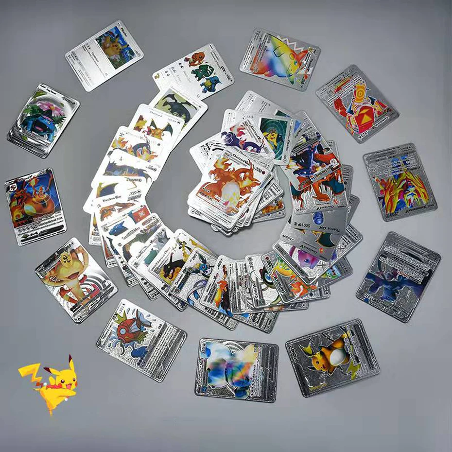 Новинка Покемон Золотая карточка серебряный карманный монстр аниме ...