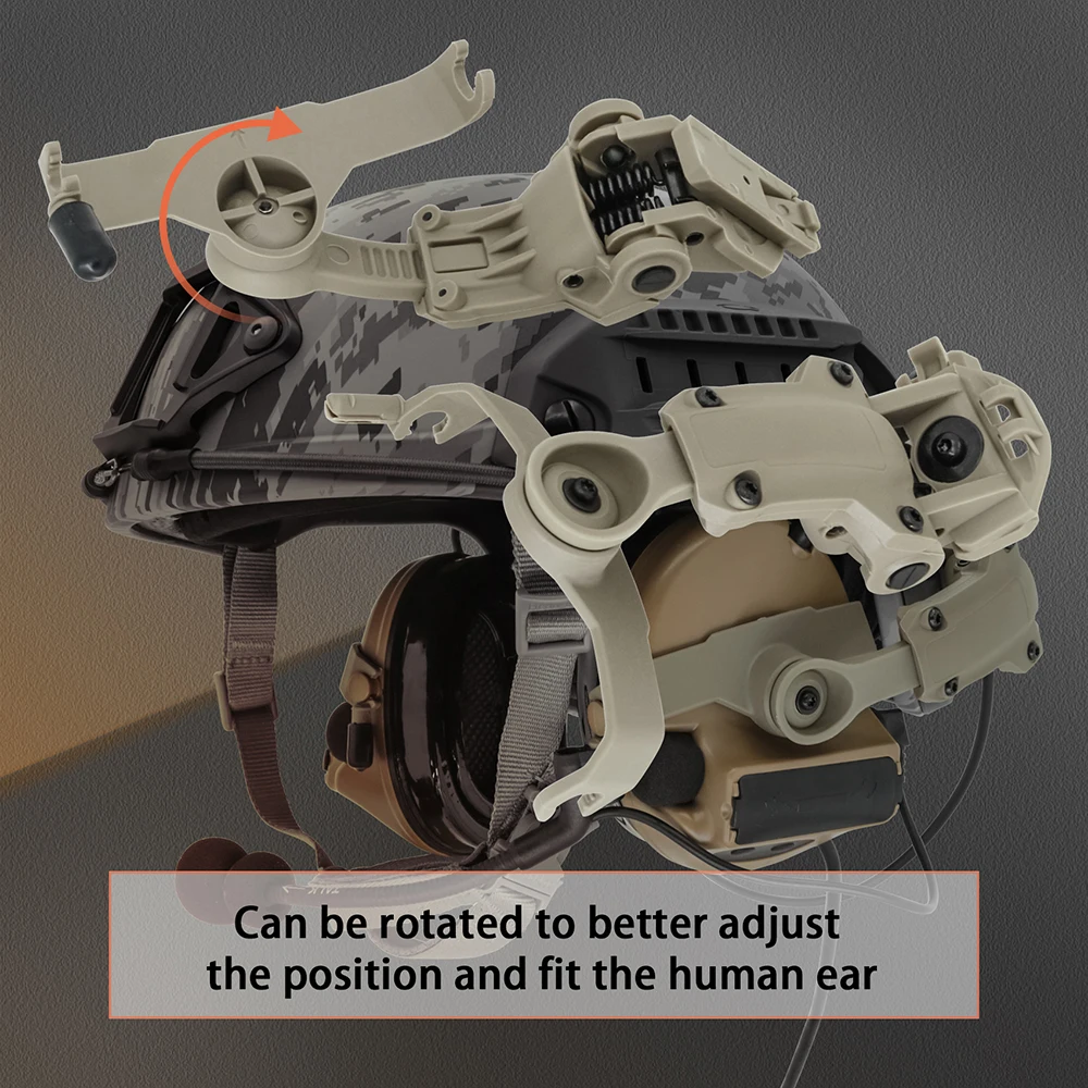 Тактическая гарнитура comtac устанавливается на шлем с помощью этого продукта. Когда гарнитура не используется, ее можно поворачивать на заднюю часть шлема, что упрощает способ хранения и создает очень низкий внешний вид.
