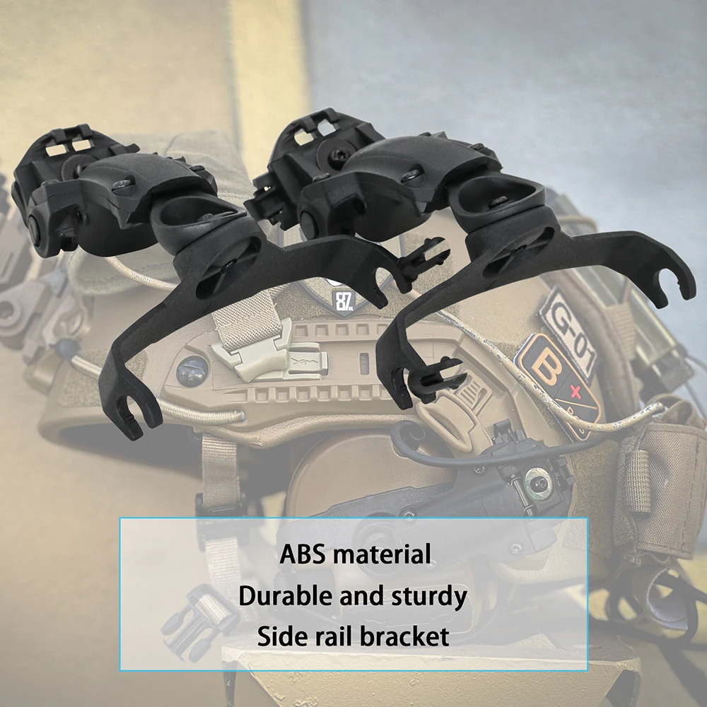 Этот кронштейн Устанавливается под боковой частью дуговой дорожки шлема. Вы можете оставить место для верхней части шлема, чтобы установить тактический фонарик или камеру. Он также может обеспечить лучшую стабильность шлема и баланс оборудования для установки переднего щита (например, оборудование ночного видения).