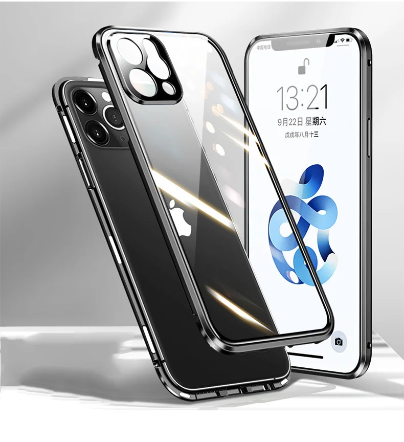Чехол 360 магнитный для iPhone 13 Mini 12 Pro MAX 11 Pro, металлический бампер, чехол из закаленного стекла, Защитная пленка для объектива камеры