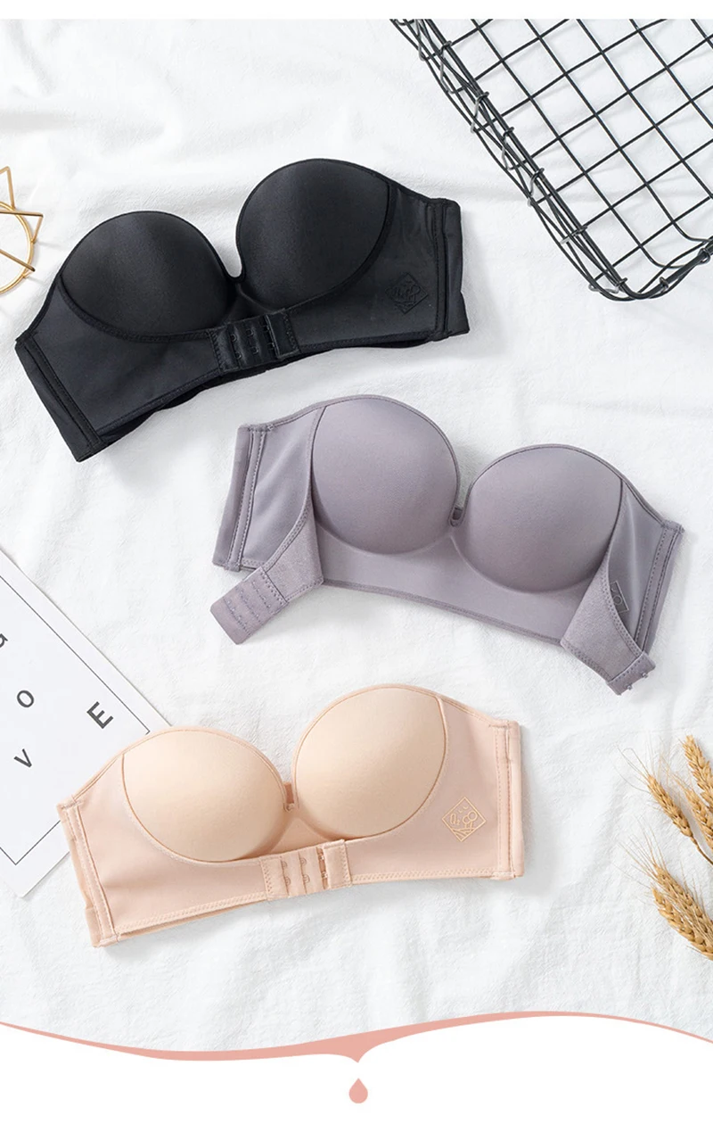 Бюстгальтер пуш-ап бесшовный без бретелек, с застежкой спереди