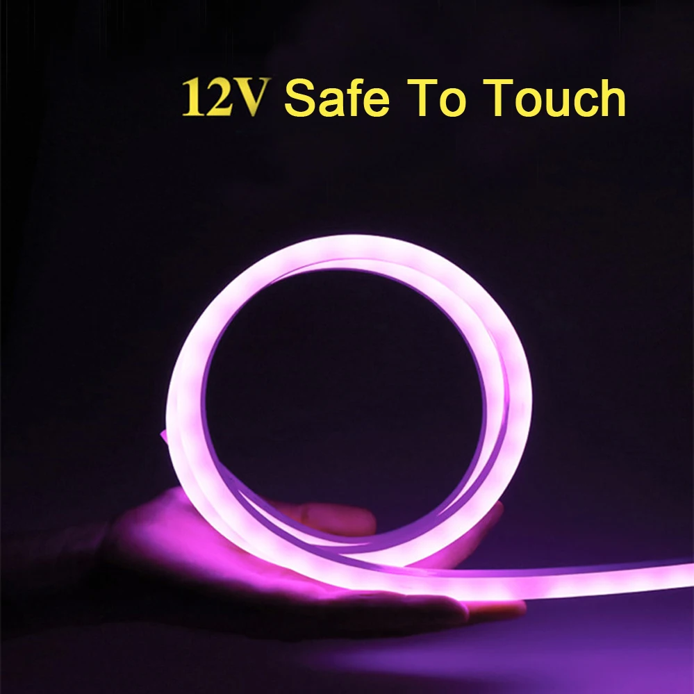 Неоновая светодиодная RGB лента, 12 В, неоновая вывеска, 5050, 2835, 120 светодиодовм, водонепроницаемый гибсветильник шнур s, белая Радужная лампа, Декор, 1 м, 2 м, 5 м, 10 м