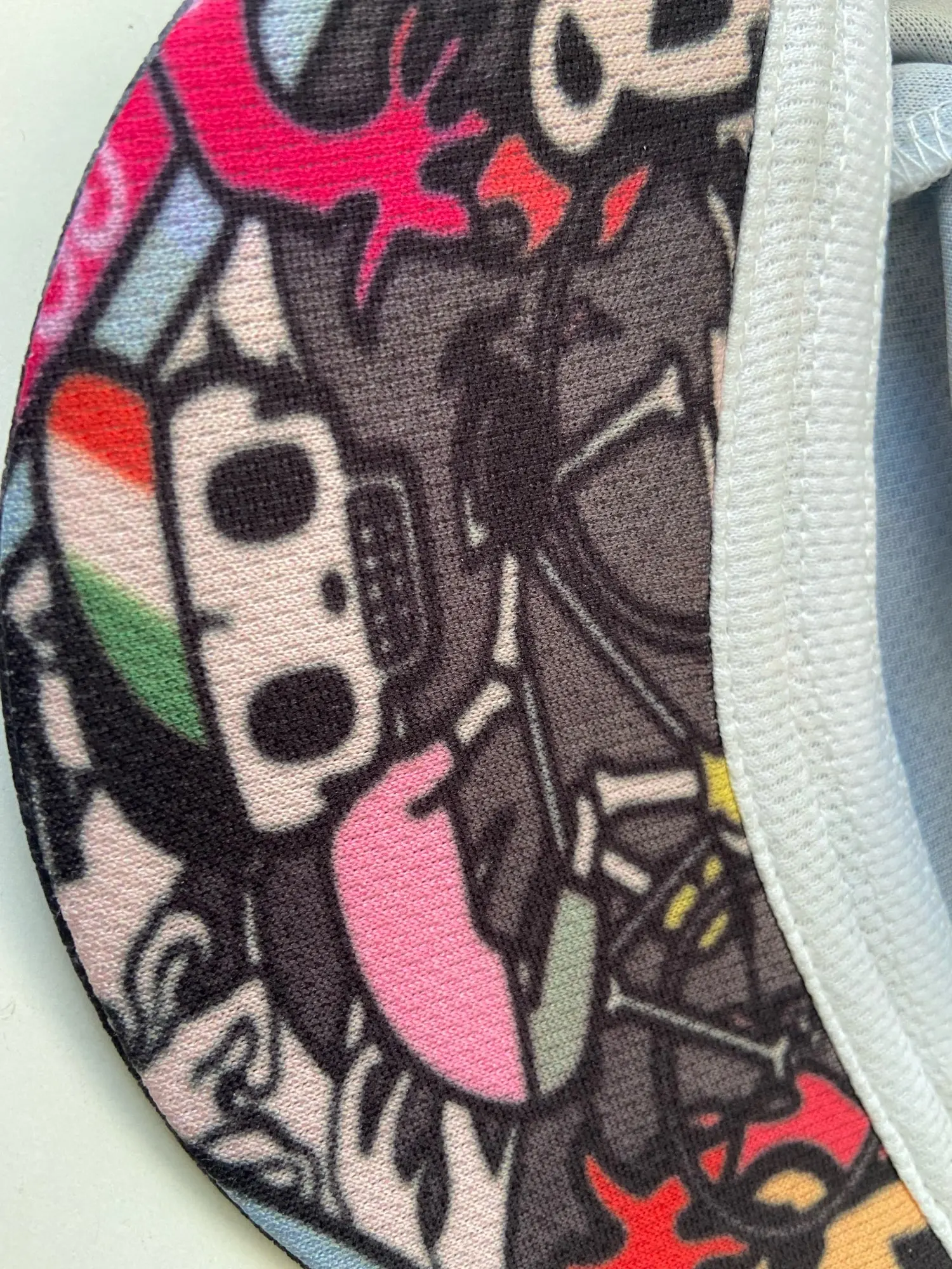 Общее качество так себе. Шляпа довольно большая (у меня есть схема 60 см), и она слишком большая для меня. Качество печати не такое, как на фотографиях покупок. Графика размыта (см. Изображения). Внутренняя часть, если Шляпа тоже не такая, как на изображениях в магазине (должна быть черная, но белая)