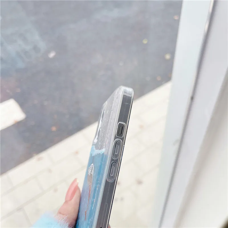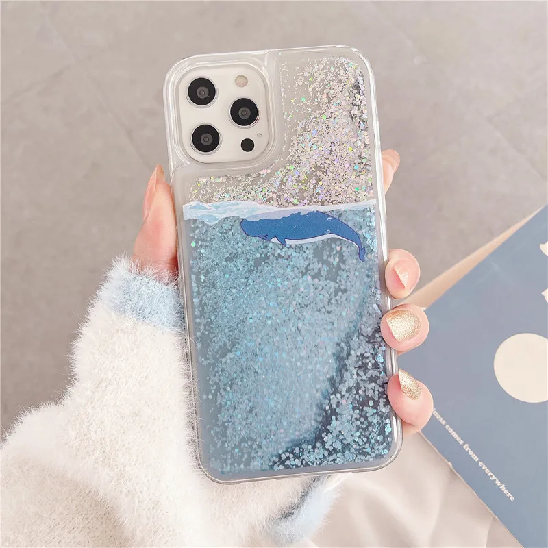 Милый мультяшный чехол для телефона с дельфином и зыбучим песком для iPhone 13, 12, Mini, 13Pro, 11 Pro, XS, Max, XR, 8, 7 Plus, Забавный динамический Жидкий чехол-накладка