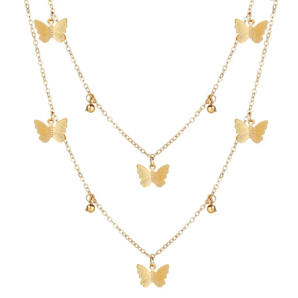 Модное женское ожерелье-бабочка, двухслойная простая Подвеска-бабоч...