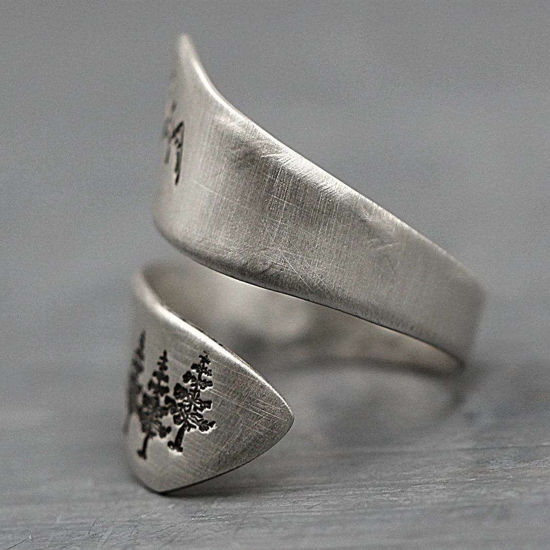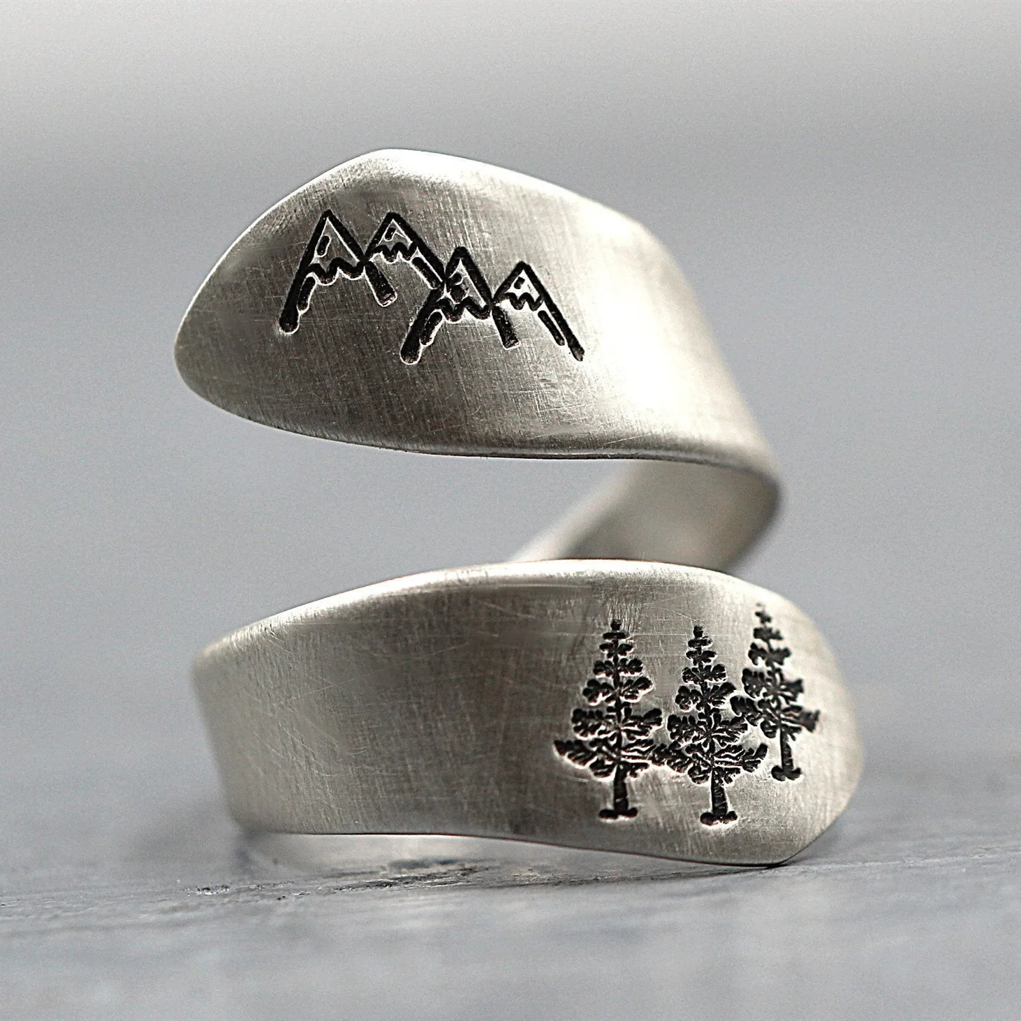 Винтажное Открытое кольцо QIAMNI в виде горного Пейзажа для женщин и мужчин, украшение для вечевечерние в рождественском и новогоднем стиле