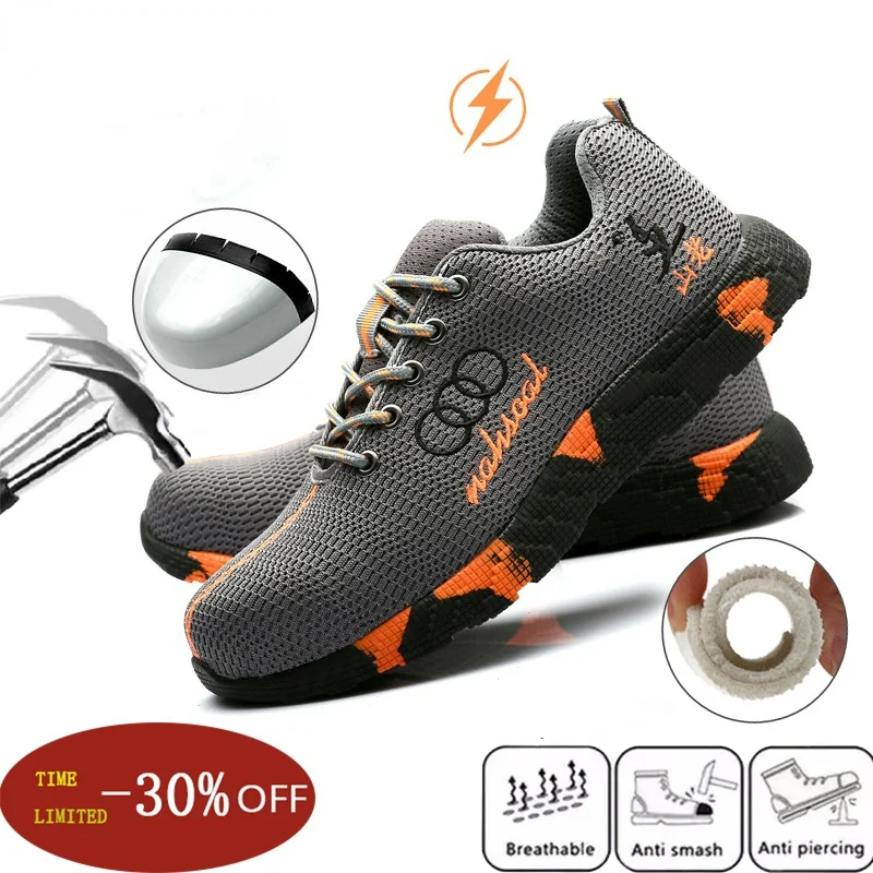 Защитные ботинки со стальным носком для мужчин и женщин, дышащая сетчатая обувь для промышленного и строительного производства, непробиваемые рабочие ботинки, защитная обувь